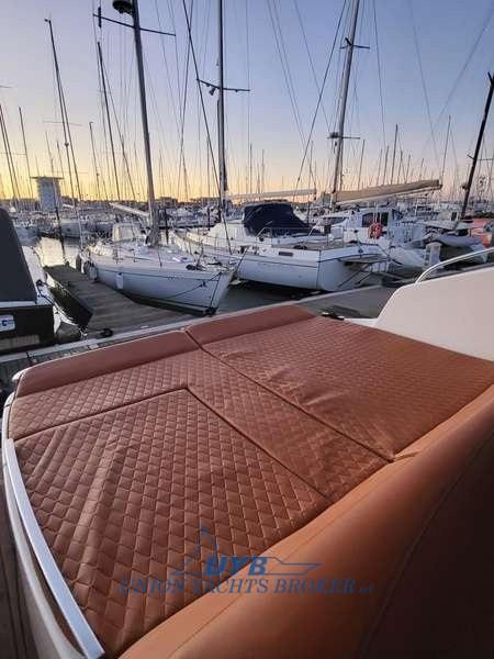 Engine Alarm, Bilge Alarm, Water pressure pump, Teak Side Decks (Filteak), Deck Shower, Electric Flaps, Tender Garage, Hard top, Flaps Indicators, Courtesy Lights, Gangway (a scomparsa), Platform (strutturale), Manual Bilge Pump, Teak Cockpit, Electric Windlass, swimming ladder, cockpit table.