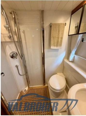 It has 2 double cabins (one owner's cabin forward and one for guests amidships), each with private en-suite bathroom and separate shower cubicle.