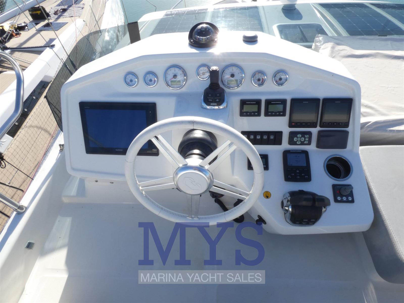 Engine Alarm, Water pressure pump, Auto-Trim, Special Colour (Scafo colore celeste), Deck Shower, Directional Spotlight, Courtesy Lights, Underwater lights, Solar panels, Gangway, Platform, Automatic Bilge Pump, Entry door, Teak Cockpit, Shorepower connector, Electric Windlass, swimming ladder, cockpit table, Living Room Foldable Table, Horn.