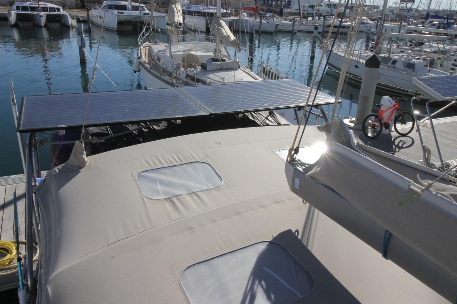 Anchor (charrue), Water pressure pump, 2 Batteries (x110ah de 2025)), Deck Shower, Twin Steering, Tender Crane (portique (sur-mesure) avec arceau basculant), Auxiliary Engine (yamaha 4cv 4t), 2 Solar panels (x250w), Manual Bilge Pump, Electric Windlass (1000w chaine de 10), swimming ladder, Outboard Engine Support Bracket, cockpit table (escamotable), 2 Tender (semi-rigide 2,90m + semi lattée 2,40m), 6 Winch (self tailing), Winch Electric ((manivelle electrique E-Wincher (pack premium)), Windex.