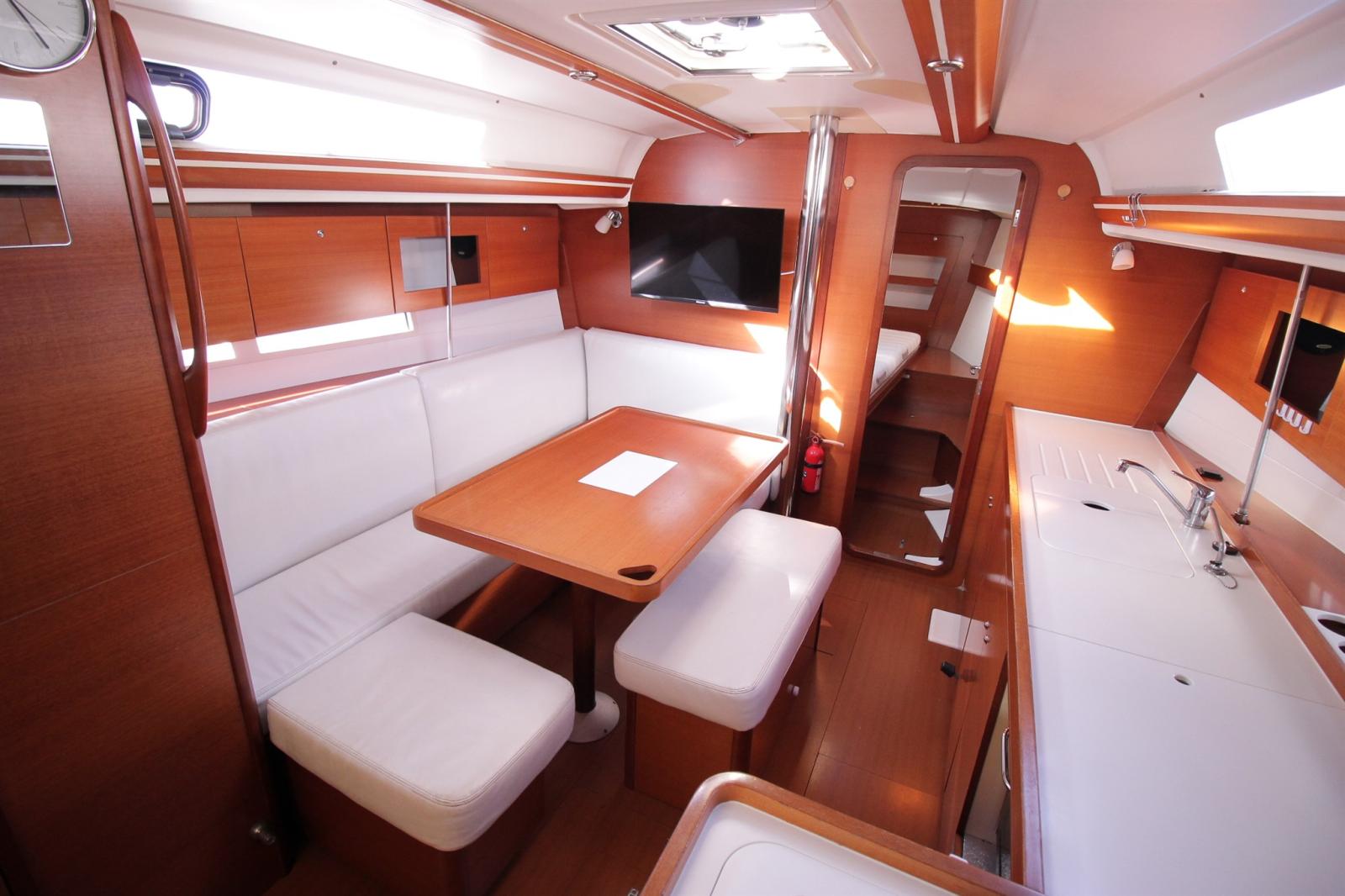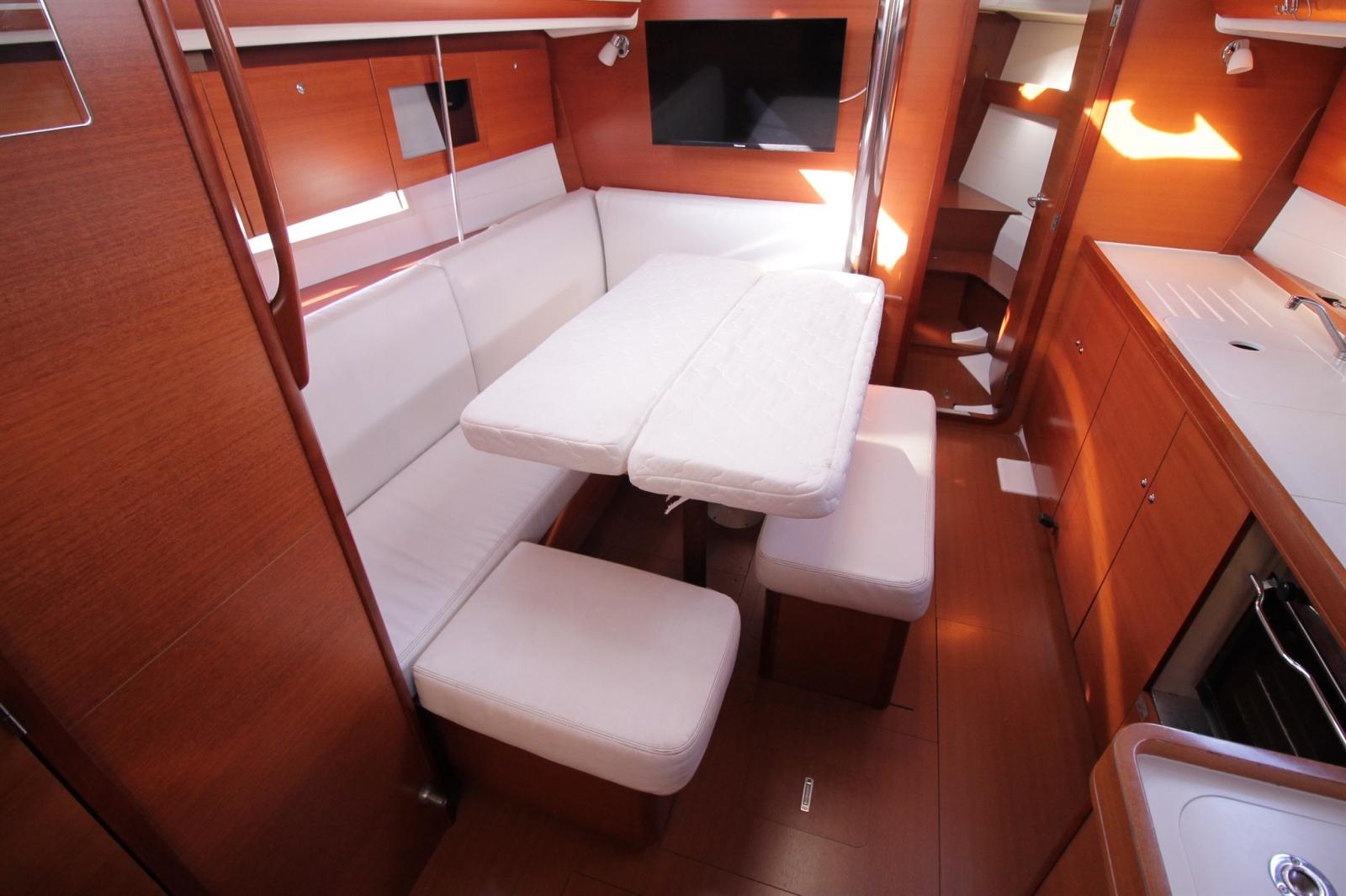 The company PHILIPPE PLAISANCE is pleased to offer you a reference: the DUFOUR 375! This great opportunity is a Performance version in 3 cabins, equipped with the 6-winch pack, a German-style mainsail hoist, a bowsprit, an asymmetrical spinnaker, a folding propeller, a retractable cockpit table and a convertible saloon. The owners, who are particularly meticulous, have also invested in order to provide even more comfort: premium mattress at the front, electric E-wincher crank, complete closed cockpit awning, custom-made gantry, VHF AIS reception, etc... Life raft and new vests, 100% of thru-hulls replaced in 2025, service battery from 2025! Berth and handling possible