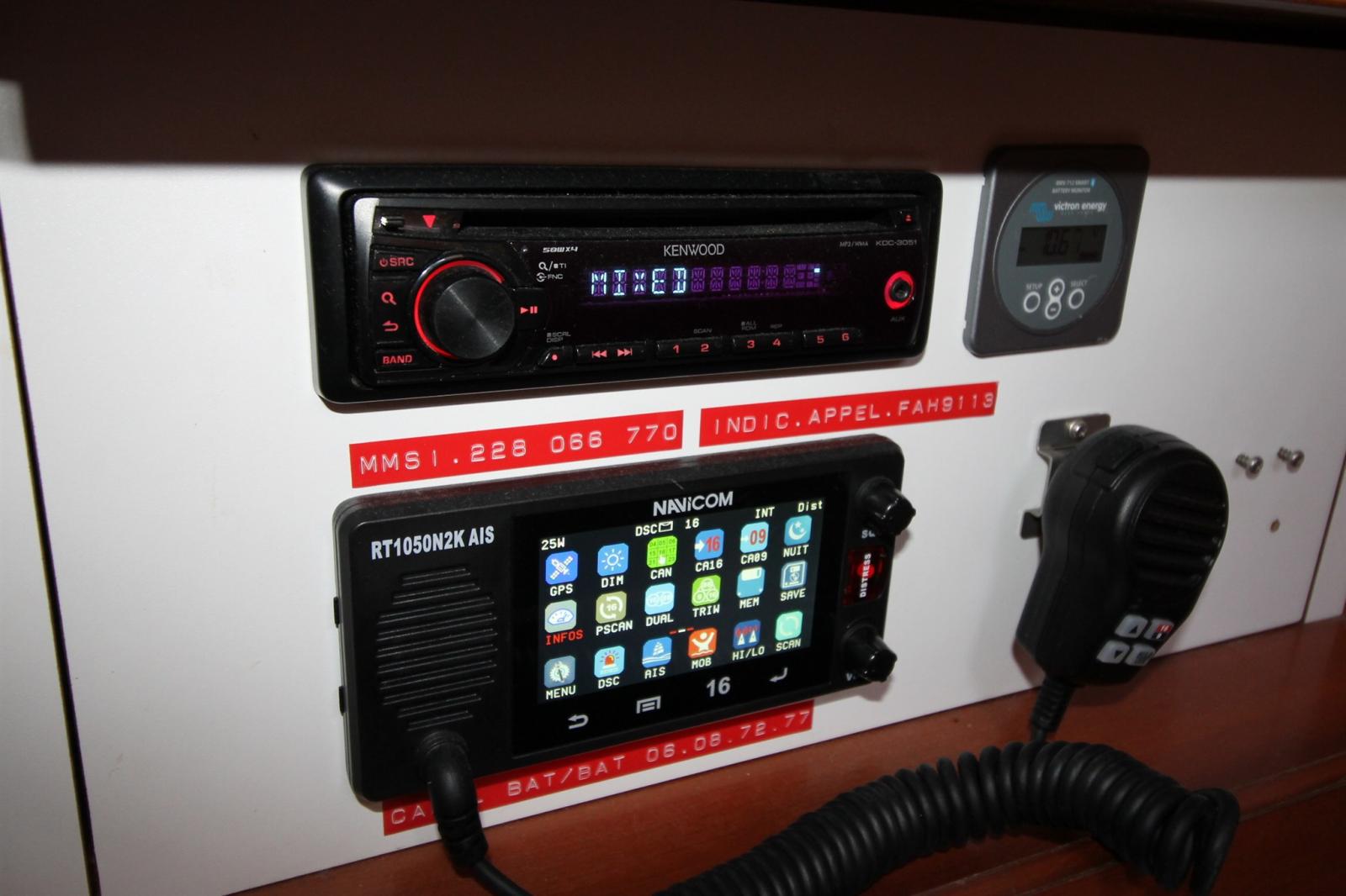 AIS (en reception), 2 Compass, Odometer (Raymarine ST70), DSC vhf (avec AIS), Interface ((gestionnaire batterie Victron)), Autopilot (Raymarine), VHF Radio (portable neuve), Sonar (Raymarine ST70), Wind Station (Raymarine ST70).