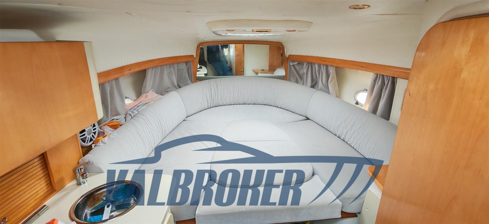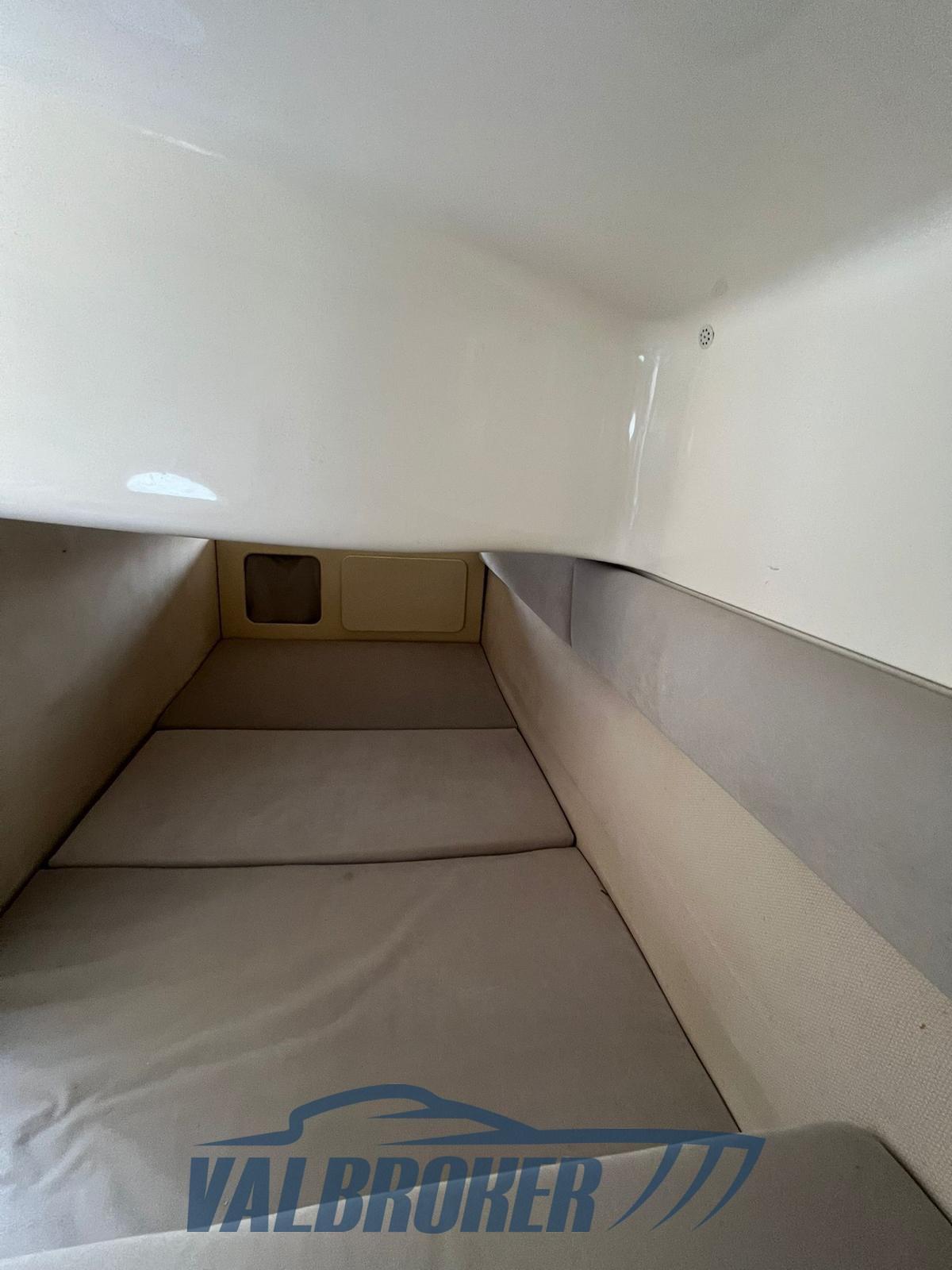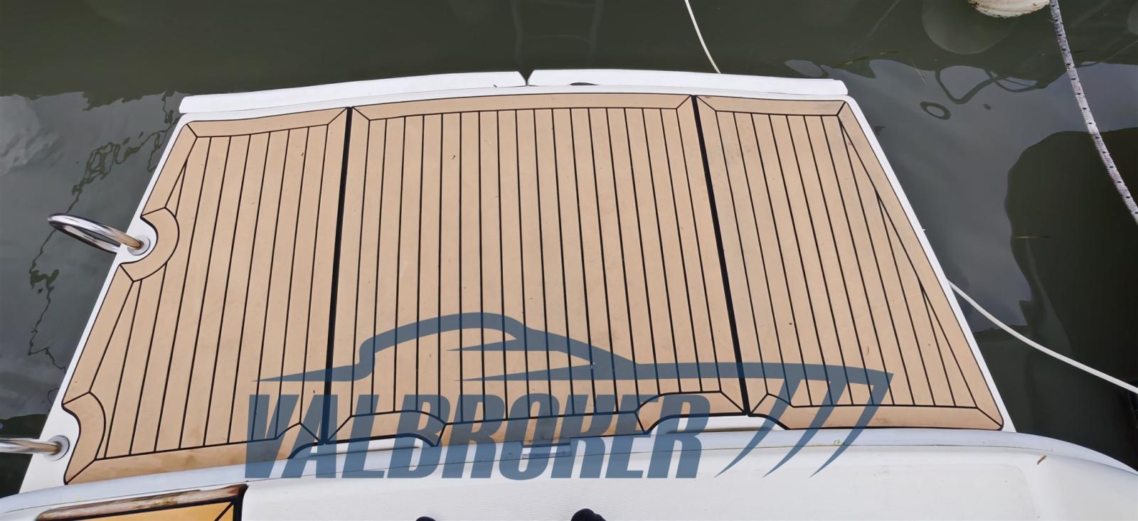 Sporty motorboat from the Italian shipyard. It is equipped with Volvo Penta 4.3 gxi V6 sterndrive engines with 225HP petrol injection. Large teak aft platform that facilitates access to the water, a spacious aft sunbathing area and a central cockpit with U-shaped seating that can be converted into a sundeck. Below deck, the cabin is accessible via two steps and offers a dinette that converts into a double bed. There is a second double berth aft, under the cockpit, and a separate bathroom. Used in fresh water only.