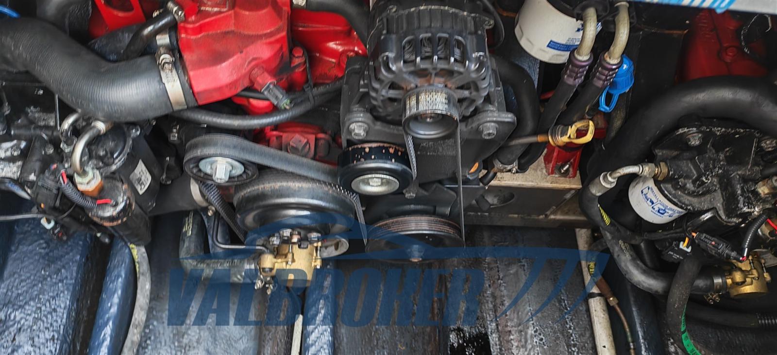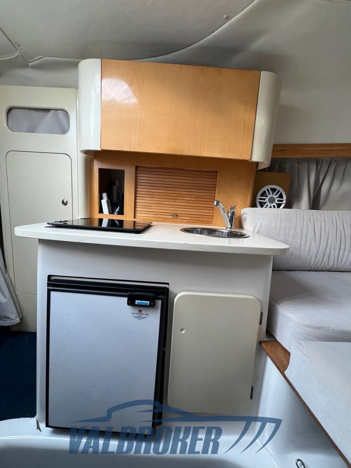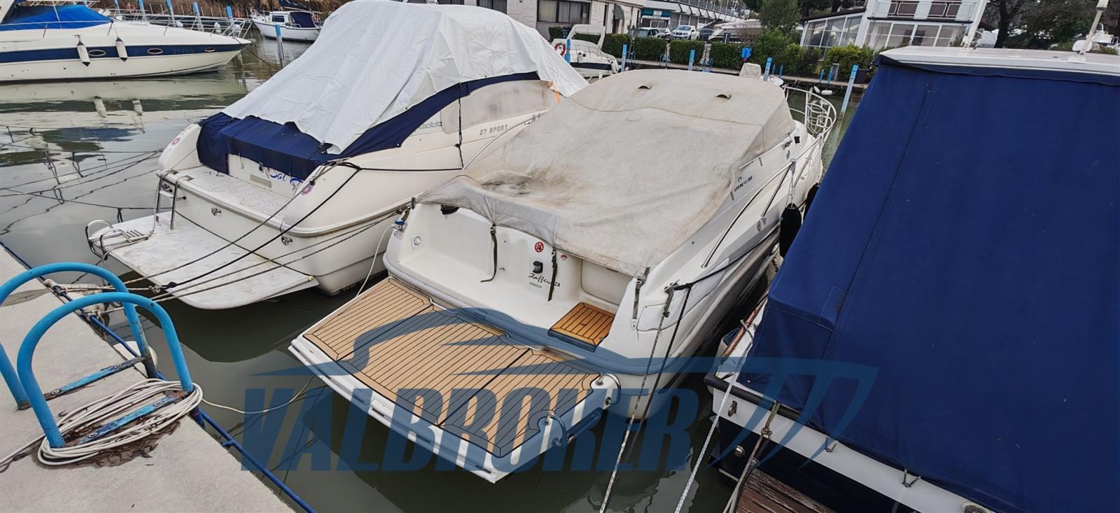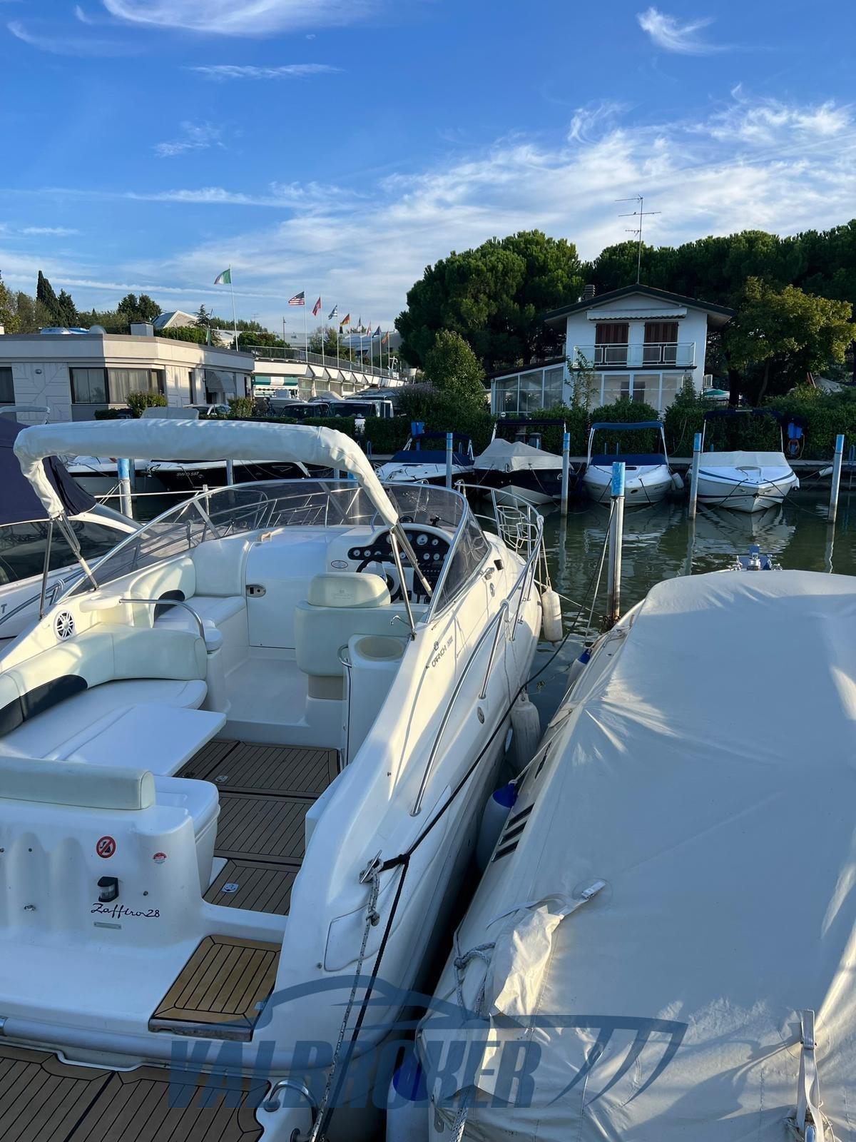 Sporty motorboat from the Italian shipyard. It is equipped with Volvo Penta 4.3 gxi V6 sterndrive engines with 225HP petrol injection. Large teak aft platform that facilitates access to the water, a spacious aft sunbathing area and a central cockpit with U-shaped seating that can be converted into a sundeck. Below deck, the cabin is accessible via two steps and offers a dinette that converts into a double bed. There is a second double berth aft, under the cockpit, and a separate bathroom. Used in fresh water only.