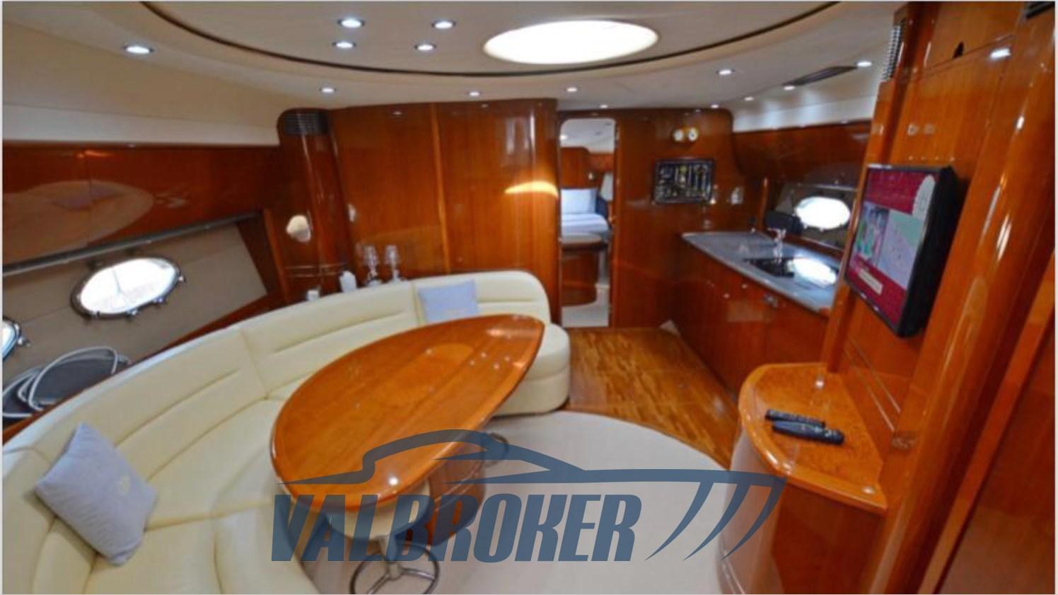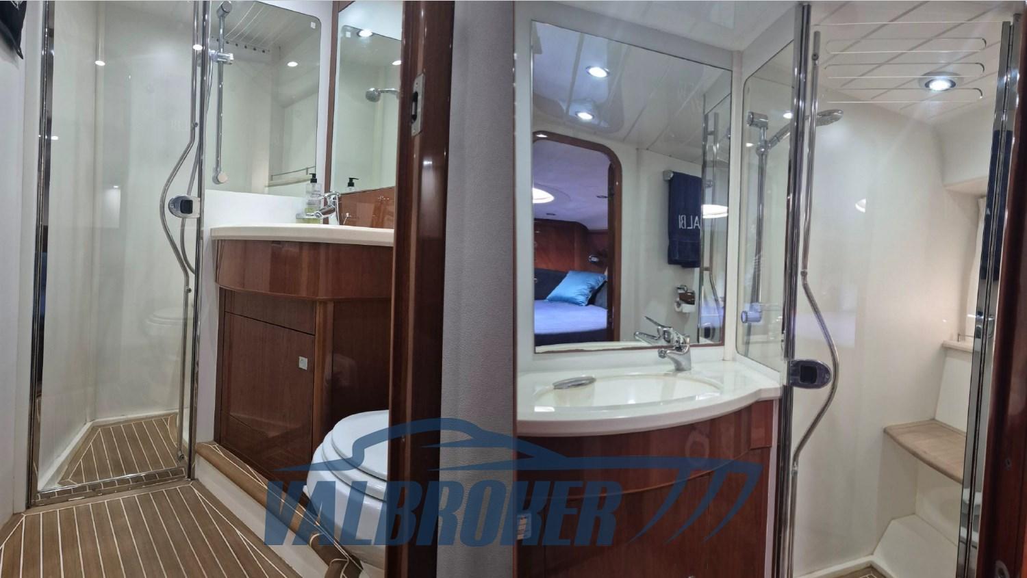 Sports yacht from the British manufacturer Princess Yachts. Motorized 2x MAN shaft line. Below deck there are three cabins: a double cabin in the bow, a double in the stern and one with bunk beds.