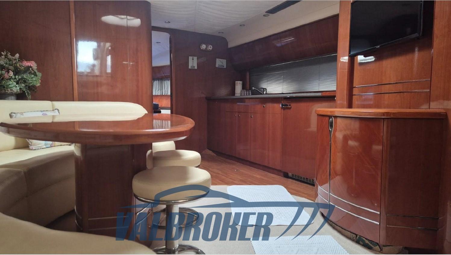 Electric soft top, large and livable cockpit, wet bar, tender garage and teak platform. FULL OPTIONAL: Bow thruster, radar, autopilot, air conditioning, generator.