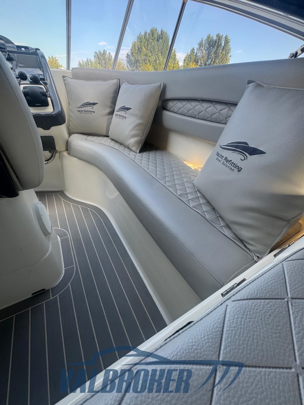Non-registered boat for sale used always and only lake. Large living spaces and low consumption thanks to the 2x Volvo Penta D4 turbo diesel 225HP common rail, very few hours of operation only 228 all in fresh water. Large cockpit also used for fishing. Below deck, comfortable convertible dinette with French bed and double cabin amidships, bathroom with double access. Air conditioning, generator, bow thruster.