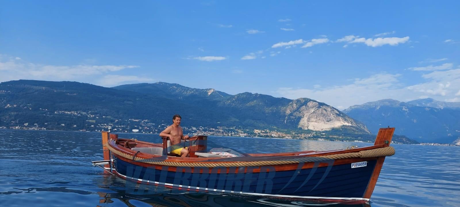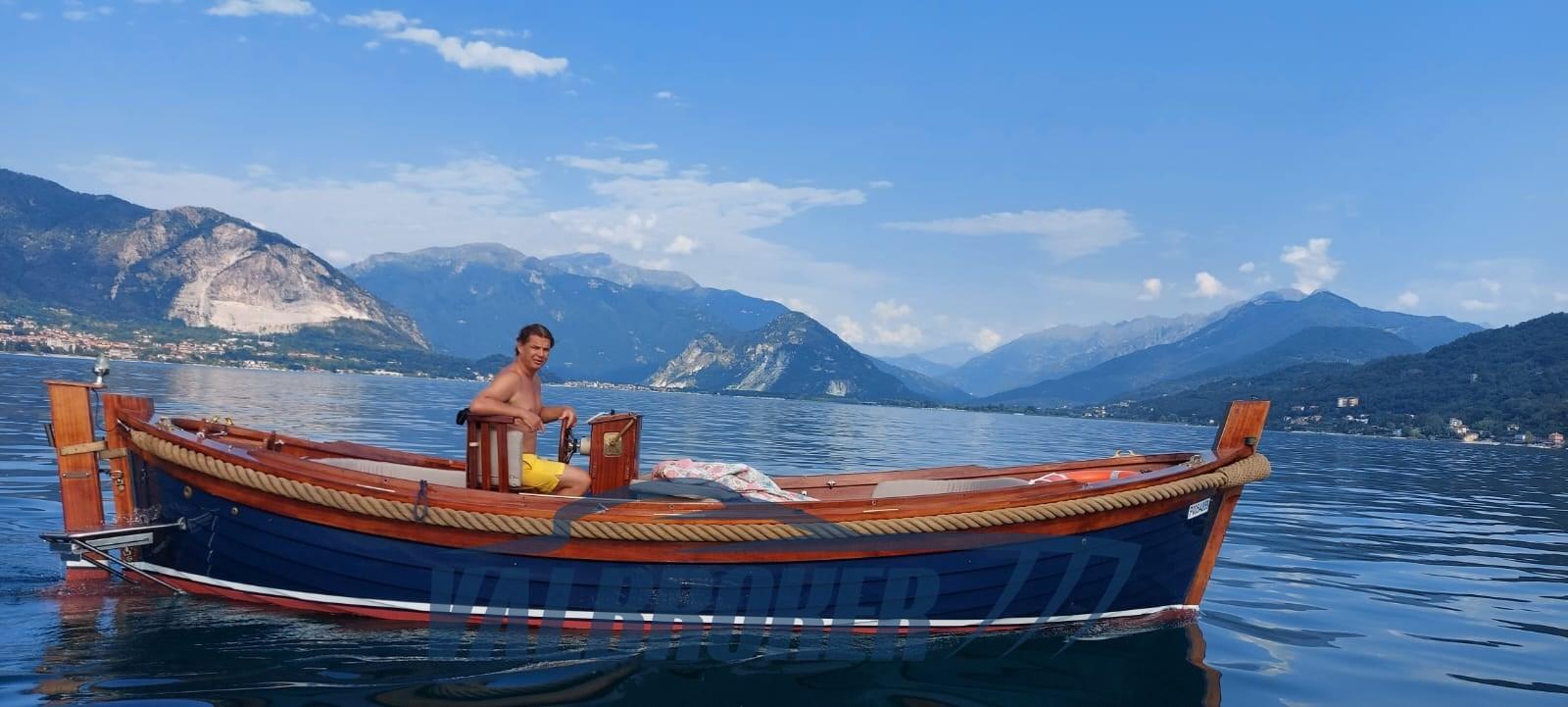 Beautiful handmade gozzo, Dutch shipyard visible in shed in Como. Only owner, USED ONLY LAKE, always put back in the shed in winter.