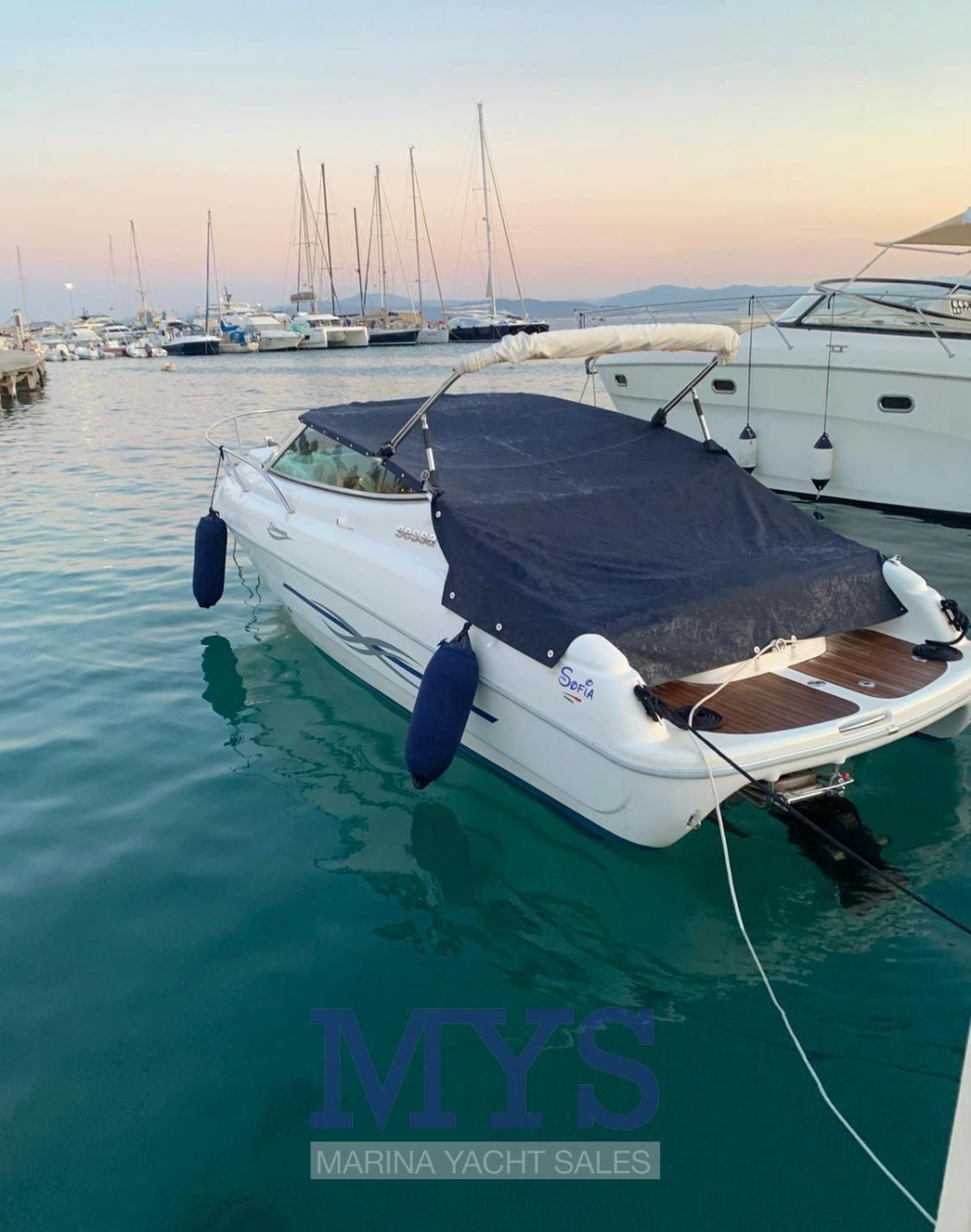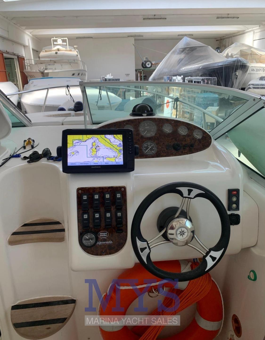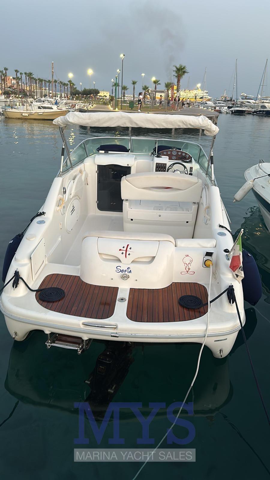 Soft and rounded lines predominate on board the Islamorada 23, a small day cruiser ideal for day trips or short cruises along the coast. Thanks to a particularly generous freeboard, a small cabin has been created below deck, sufficient for overnight stays. The deep V hull, with an angle of 31° at the bow and 19° at the stern, has two hydrodynamic support skids on each side. The engine, consisting of a 227 hp petrol sterndrive engine with direct injection, allows it to reach decidedly high top speeds. EXCELLENT GENERAL CONDITION, DEAL