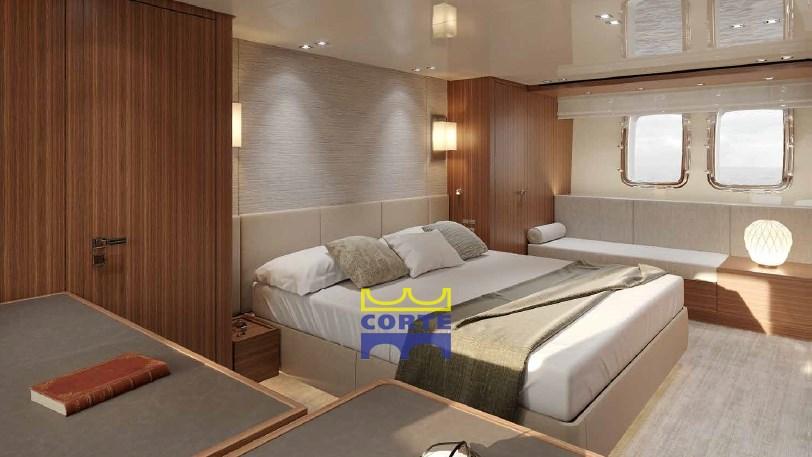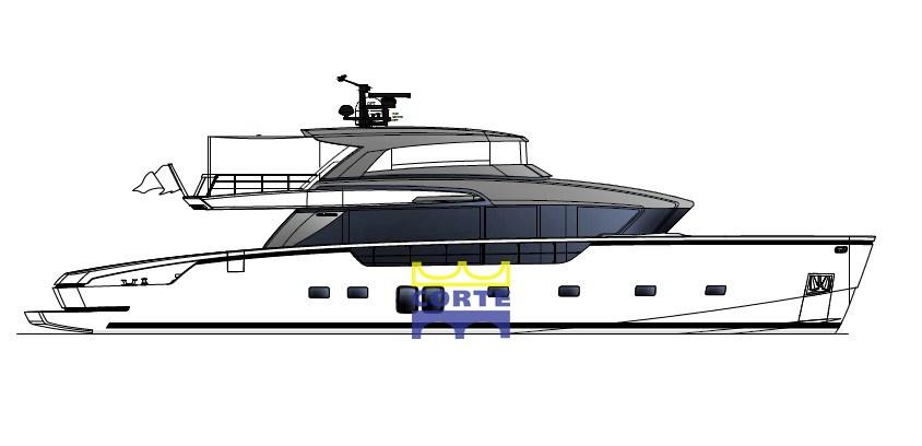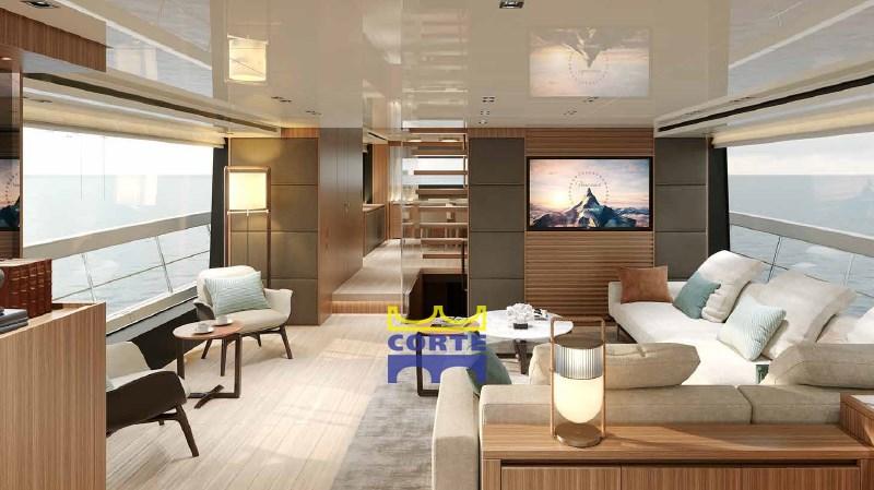 Fume/Gas Detector, Engine Alarm, Bilge Alarm, Deck Shower (flybridge), Hard top, Fire Extinguishing System, Anchor Chain Washdown, Underwater lights (n.°4 a led 7000 lumen (n° 2su spiaggetta di poppa e n°2 laterali)), Gangway, Platform, Entry door, Teak Cockpit, Shorepower connector, Water harbor connector system, swimming ladder, Stabilizers (pinne stabilizzatrici elettriche Zero Speed all'ancora e in navigazione), cockpit table.