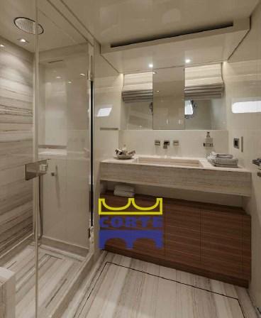 Double master cabin amidships,. with 40" TV, chaise long, walk-in closet. Owner's bathroom with large shower.