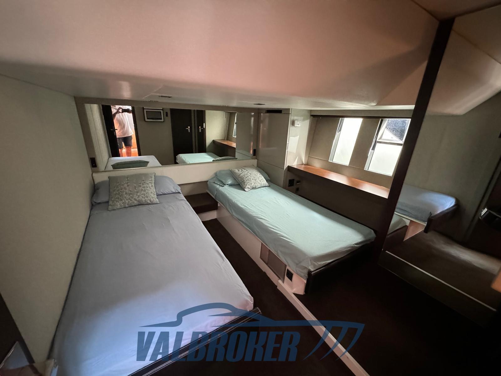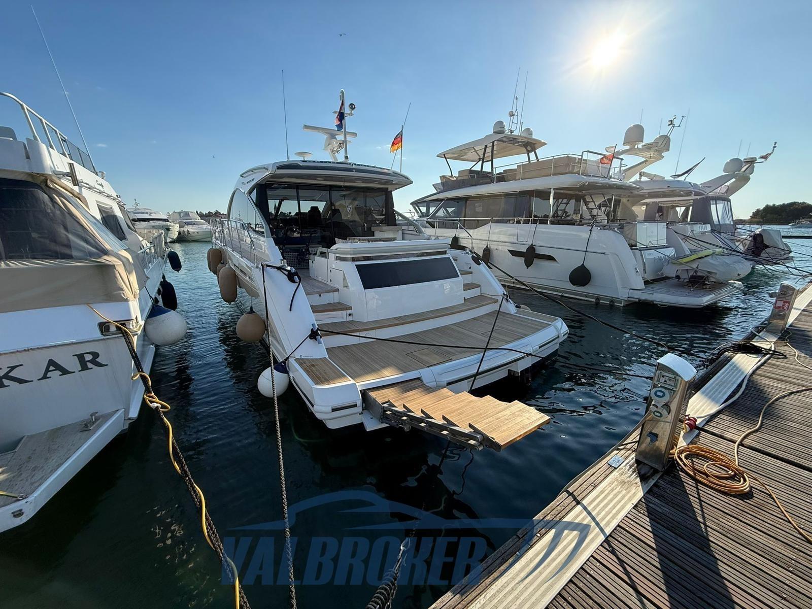 Elegant and contemporary sportcruiser. Full-beam master cabin with en-suite bathroom, two guest cabins with en-suite facilities and crew cabin. Powered by 2x900HP Volvo Penta D13 shaft drive, only 700 engine hours.