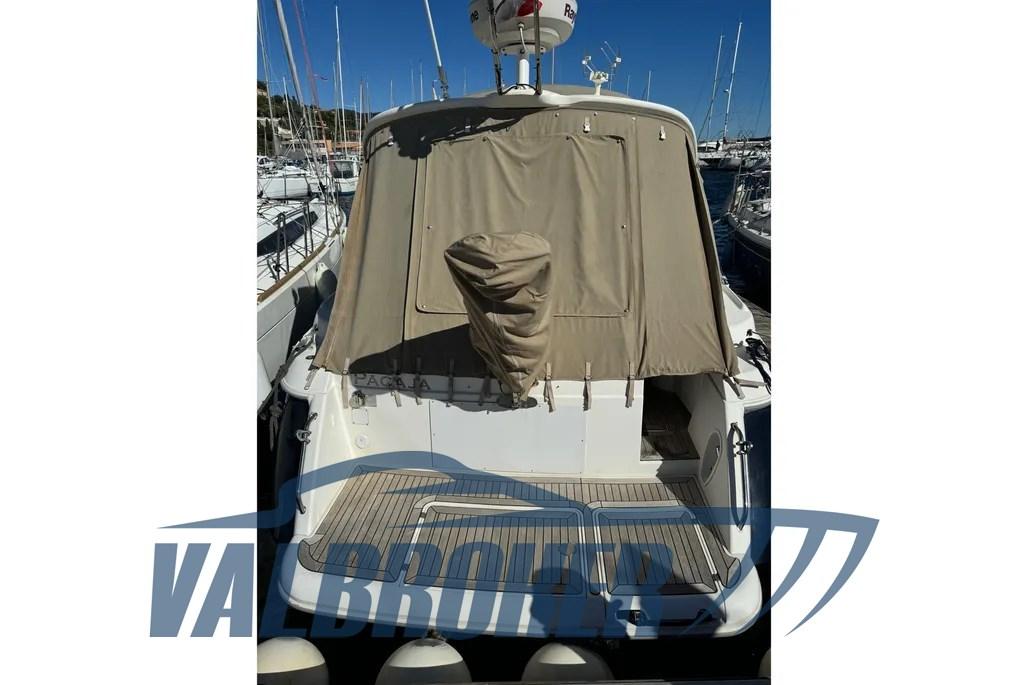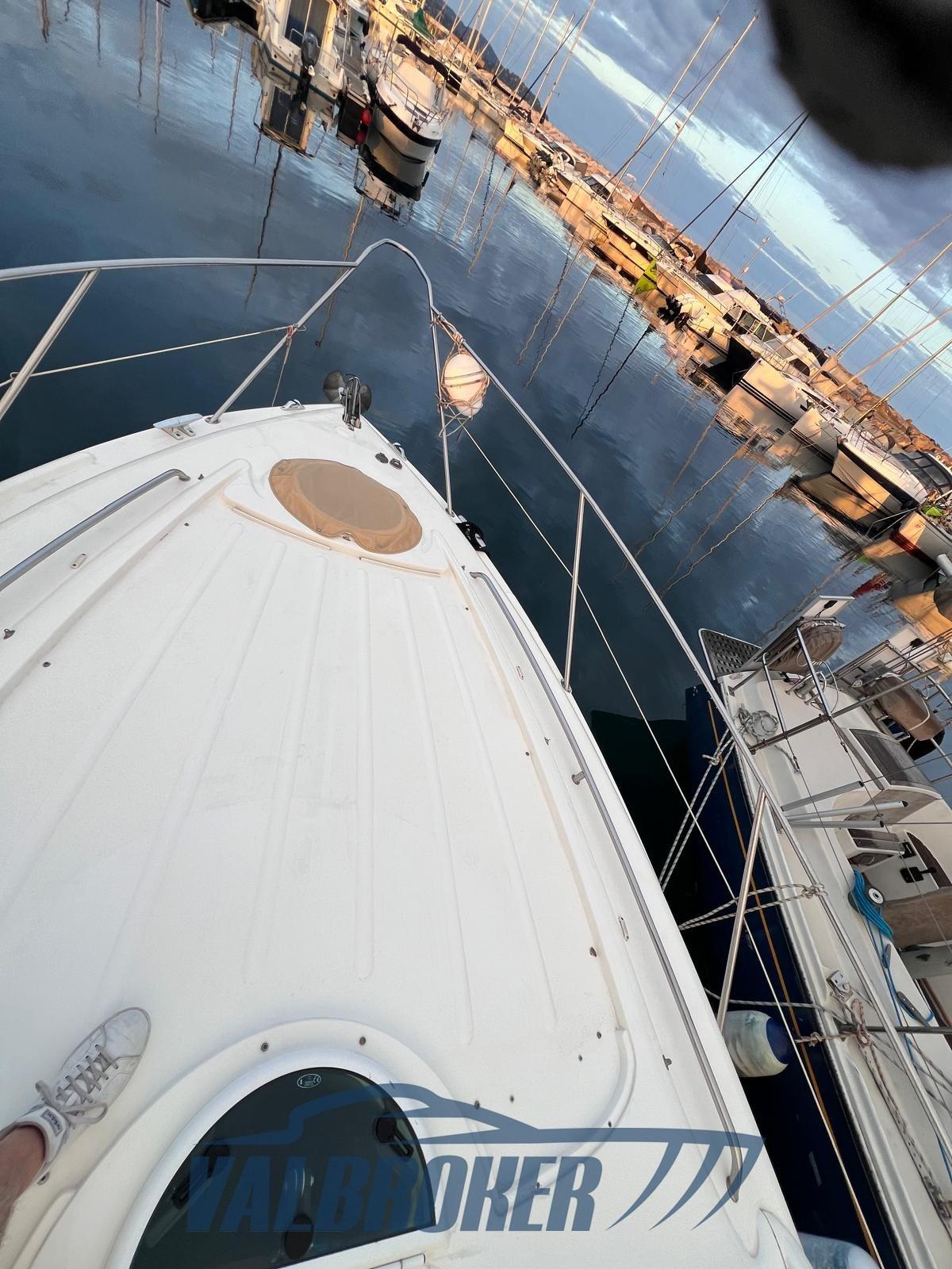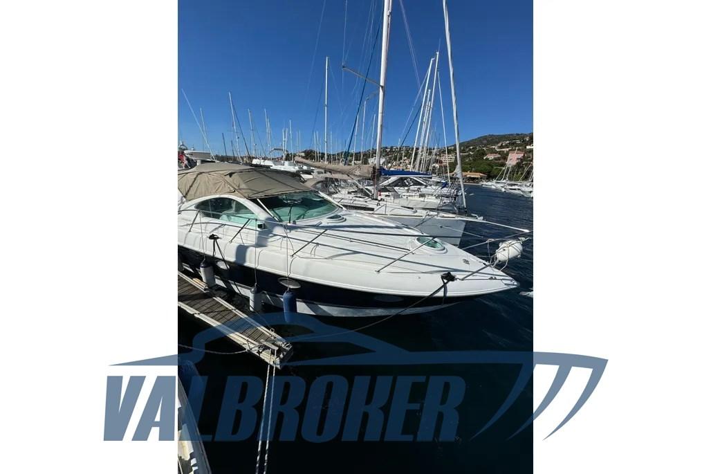 Sport Cruiser from the British shipyard, equipped with 2x Volvo Penta KAD 44. Equipped with a master cabin in the bow, a guest cabin in the stern with single beds, a convertible dinette and a bathroom.