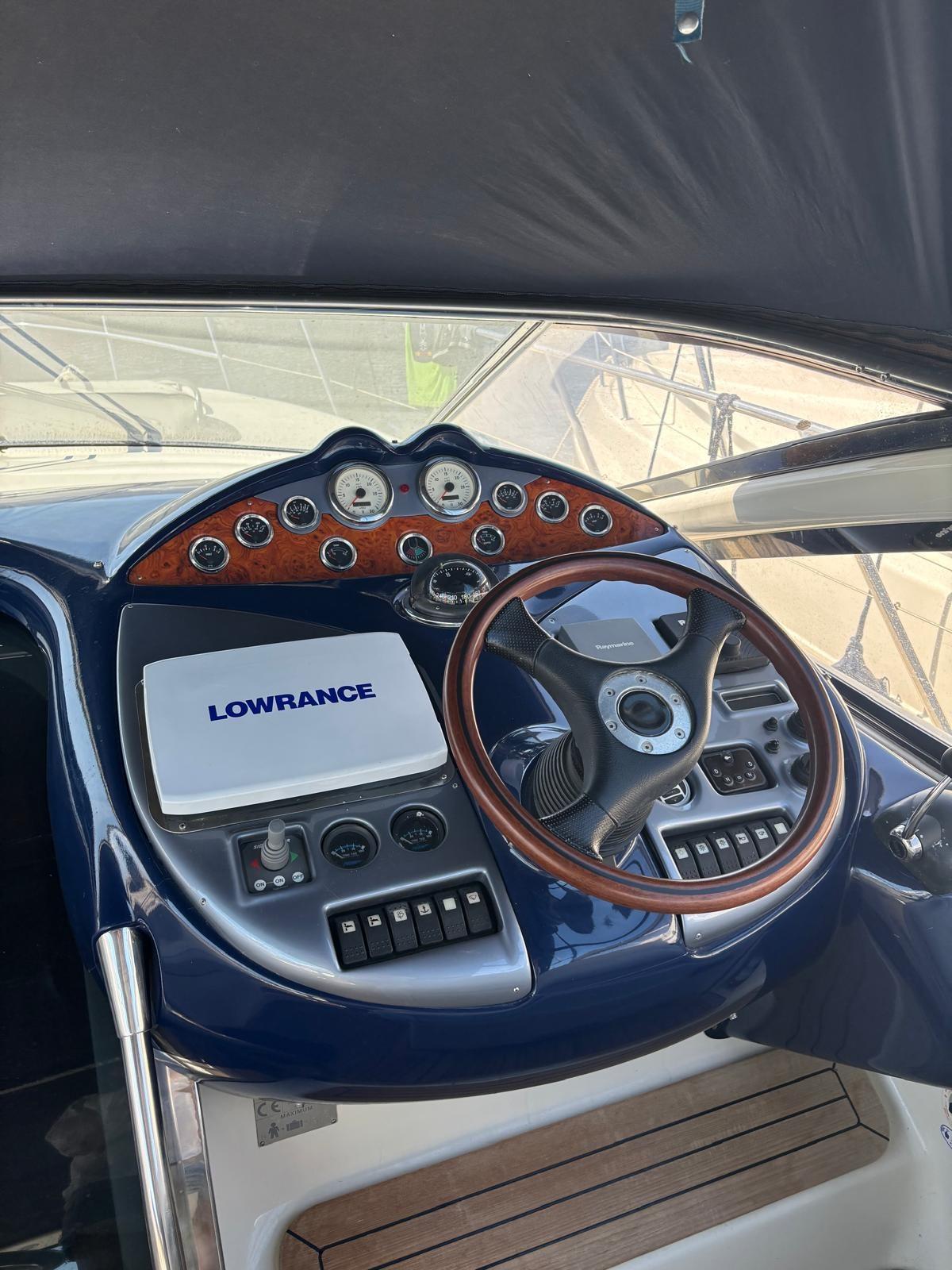 Electronic engine control, Depth Sounder (Raymarine), Autopilot (Raymarine), Plotter with GPS antenna (Lowrance).