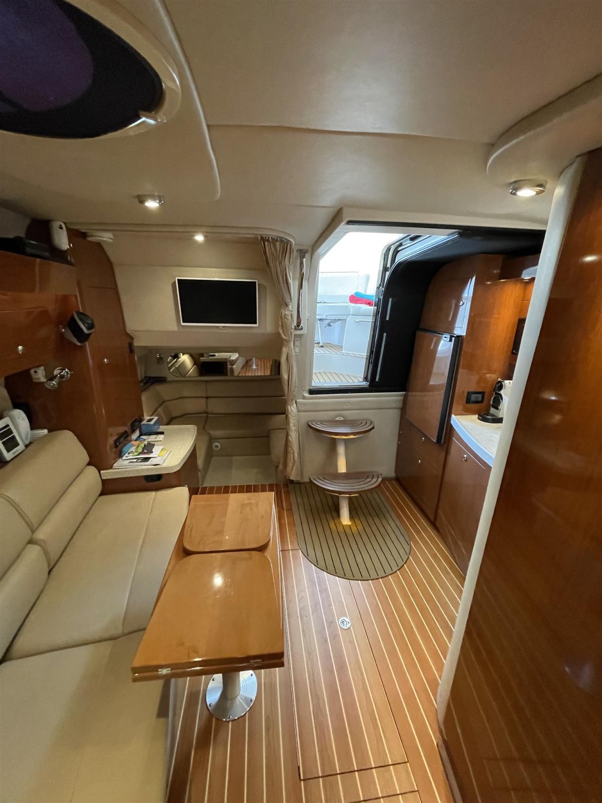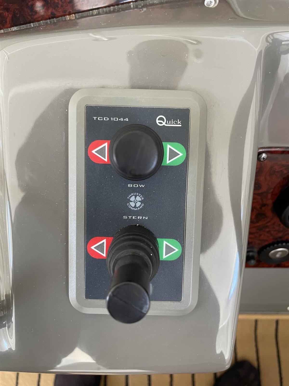 Engine Alarm, Water pressure pump, Shore power cable, Deck Shower, Stern Thruster (Quick), Bow Thruster (Quick), Hydraulic Flaps, Tender Crane, Washbasin in the cockpit, Underwater lights, Shorepower connector, Electric Windlass, swimming ladder, cockpit table, Tender, T-Top.