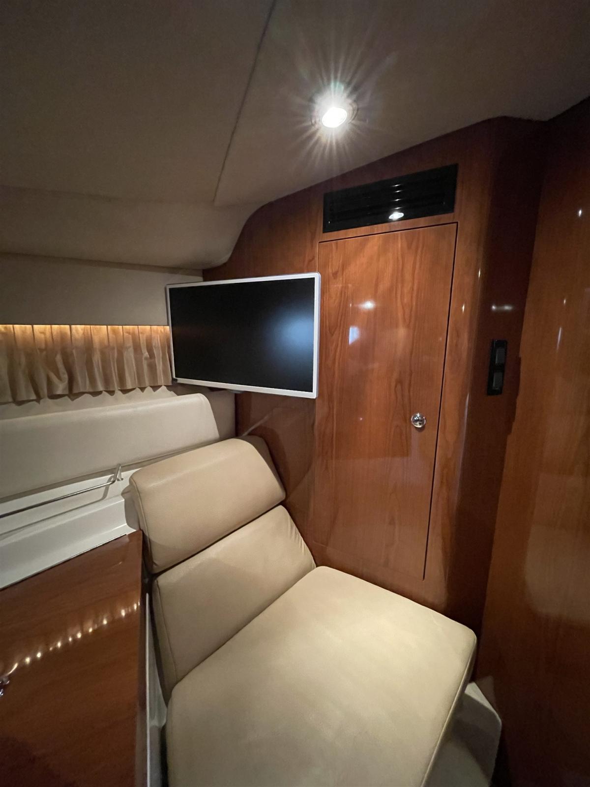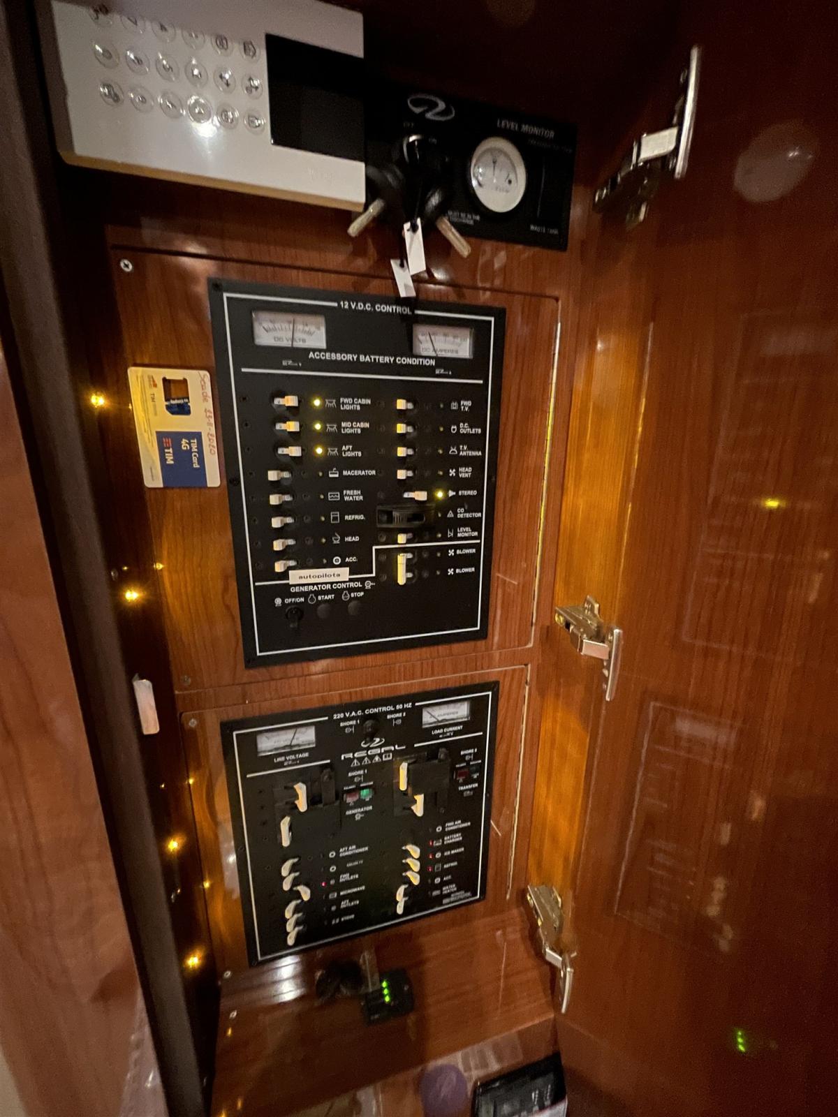 Speakers (Kenwood), Satellite TV antenna (Raymarine), Radio AM/FM (Fusion), Hi-Fi (Sony), 2 TV.