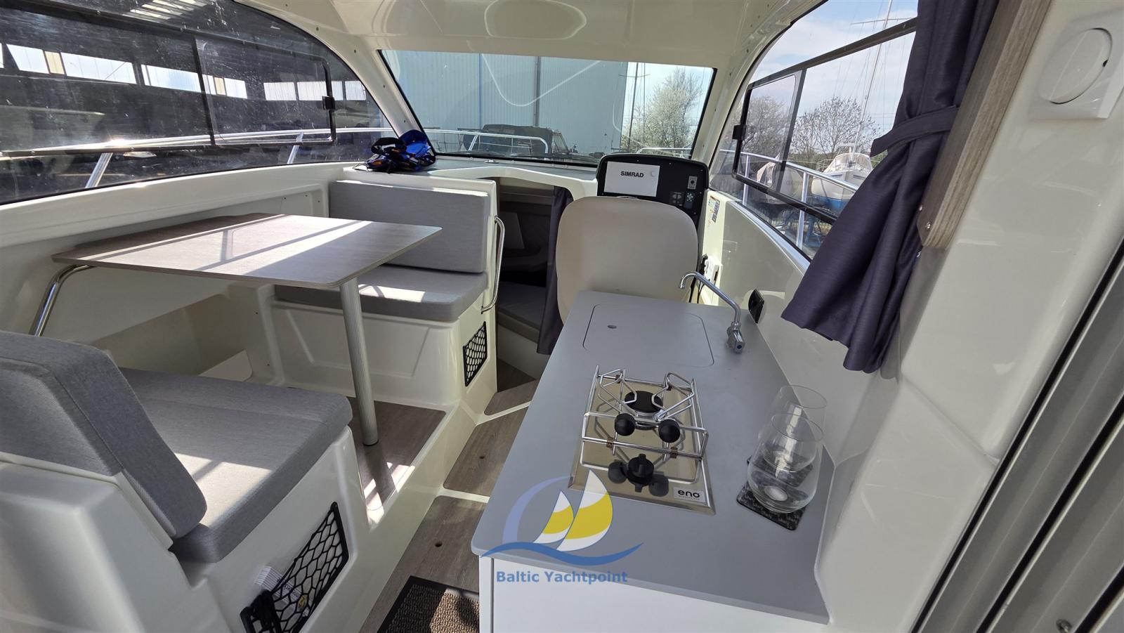 The 755 Weekend offers a spacious cockpit, a sheltered steering position and a comfortable cabin with sleeping space for several people – ideal for weekend trips or longer trips.
