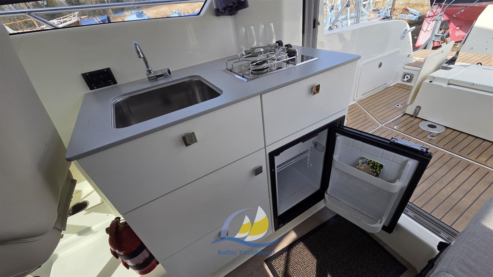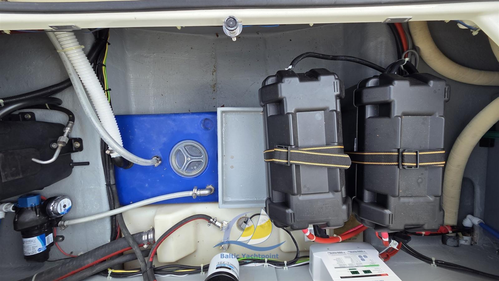 Water pressure pump, 2 Batteries, Shore power cable, Special Colour (anthrazit), Electric Flaps, Platform, Manual Bilge Pump, Entry door, Teak Cockpit (Flexiteak), swimming ladder, cockpit table, Horn.