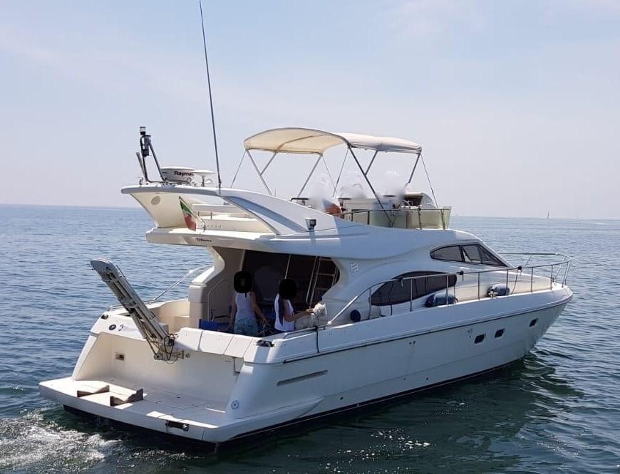Engine Alarm, Bilge Alarm, Alternator, Water pressure pump, Life Raft (nuovo 2025), 5 Batteries, Deck Shower, Directional Spotlight, Hydraulic Flaps, Fire Extinguishing System, Anchor Chain Washdown, Gangway (Idraulica besenzoni), Platform, Automatic Bilge Pump, Manual Bilge Pump, Entry door, Teak Cockpit, Shorepower connector, Voltage Rectifier, Rollbar, Electric Windlass, swimming ladder, Saddles for tender, cockpit table, Horn, Stern Winches.