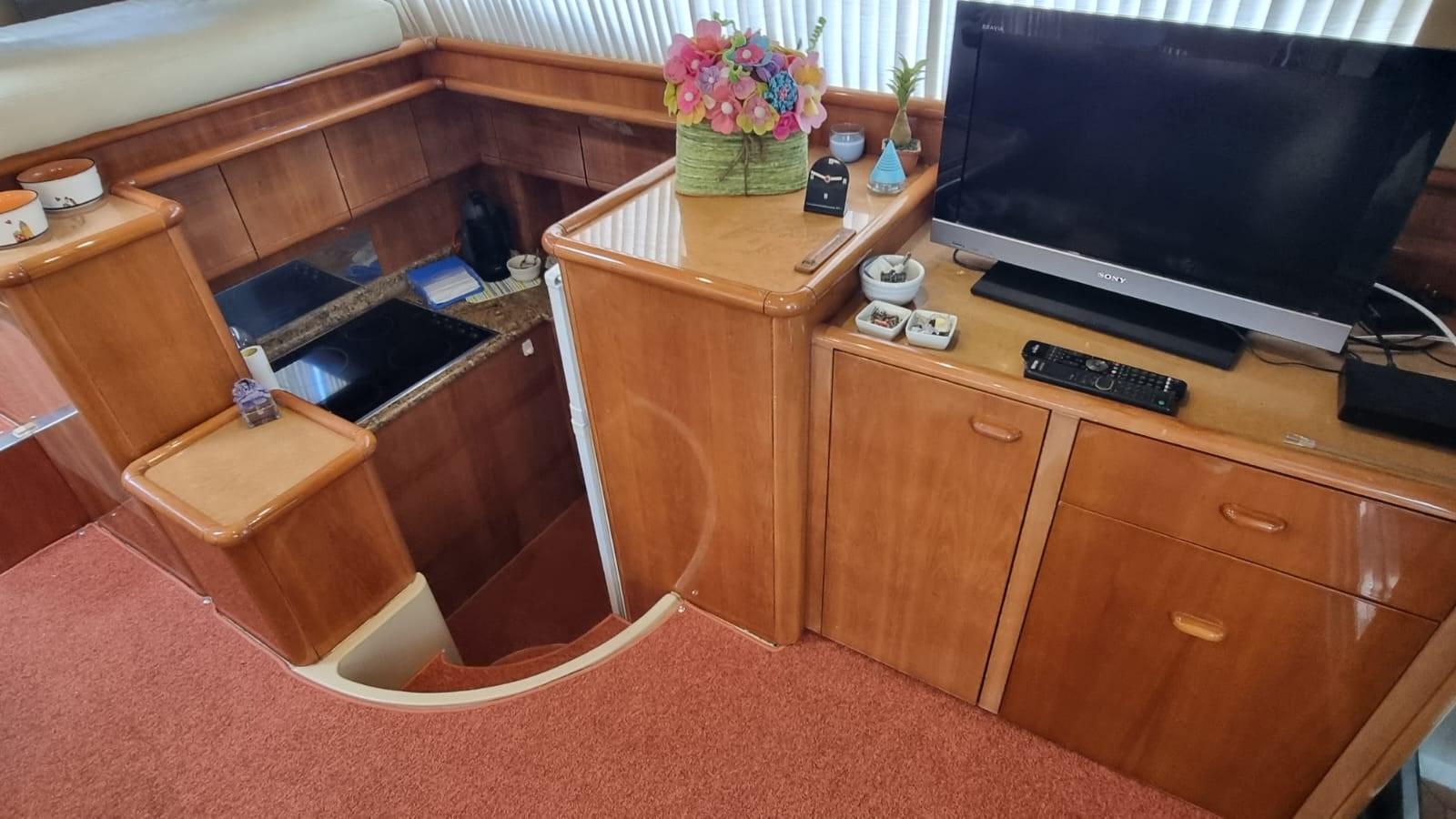 Galley, Deck Refrigerator (sul fly), Refrigerator (190 litri), Icebox, Ceramic hot plate (4 fuochi).