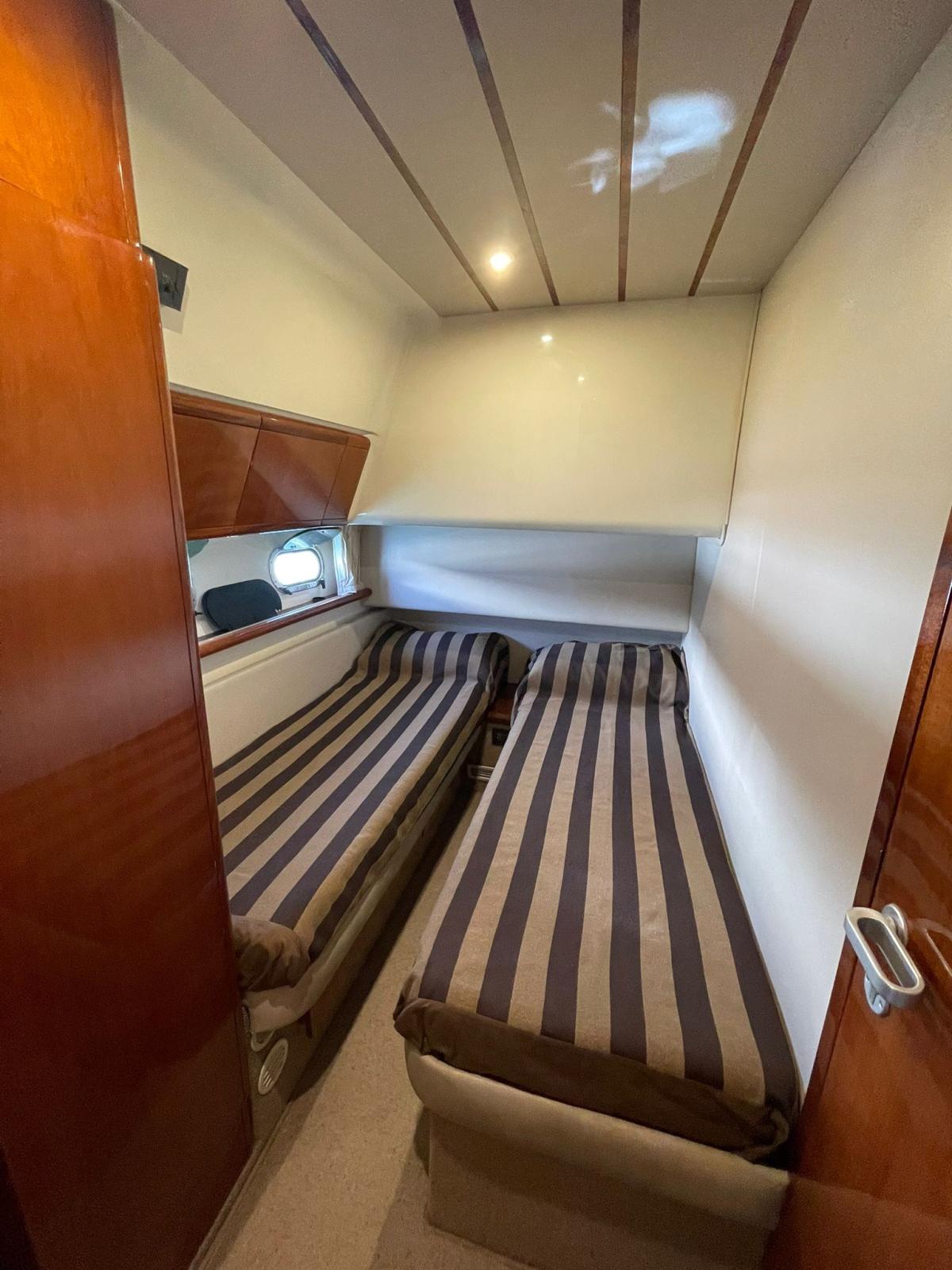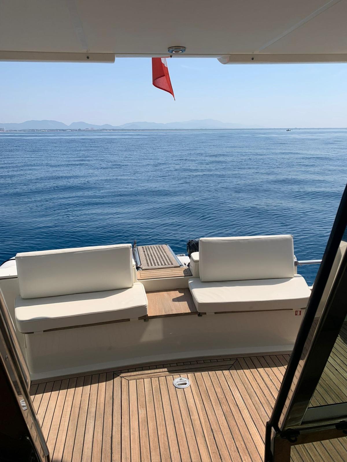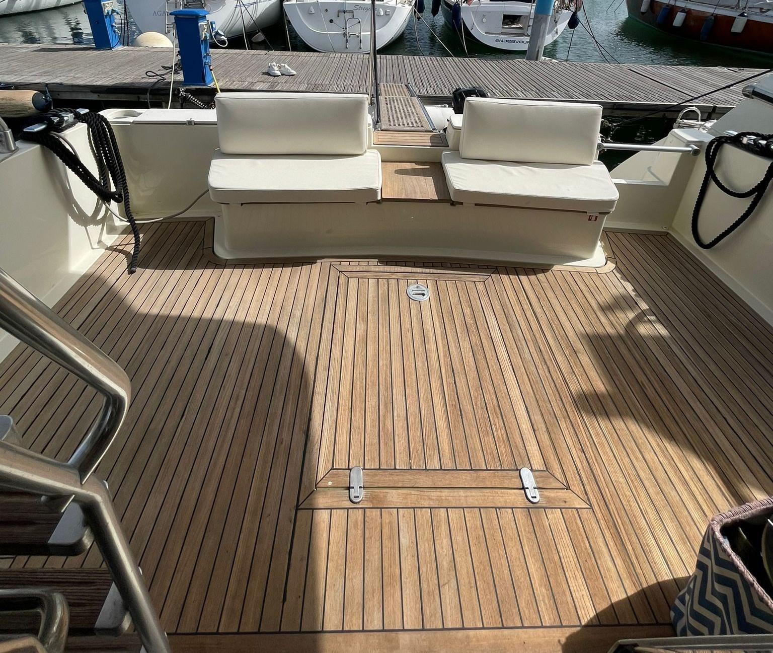 Battery charger (nuovo 2024), Deck Shower, Directional Spotlight, Hydraulic Flaps, Courtesy Lights, Gangway (idraulica Besenzoni), Teak Cockpit, Electric Windlass, cockpit table, Tender (270cm Brig con motore Mercury 3,5).