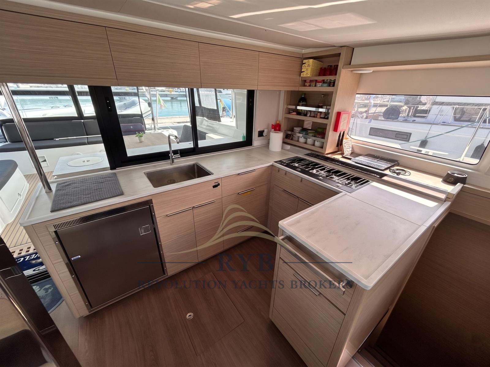 Galley, Burner, Deck Refrigerator, ICE Maker.