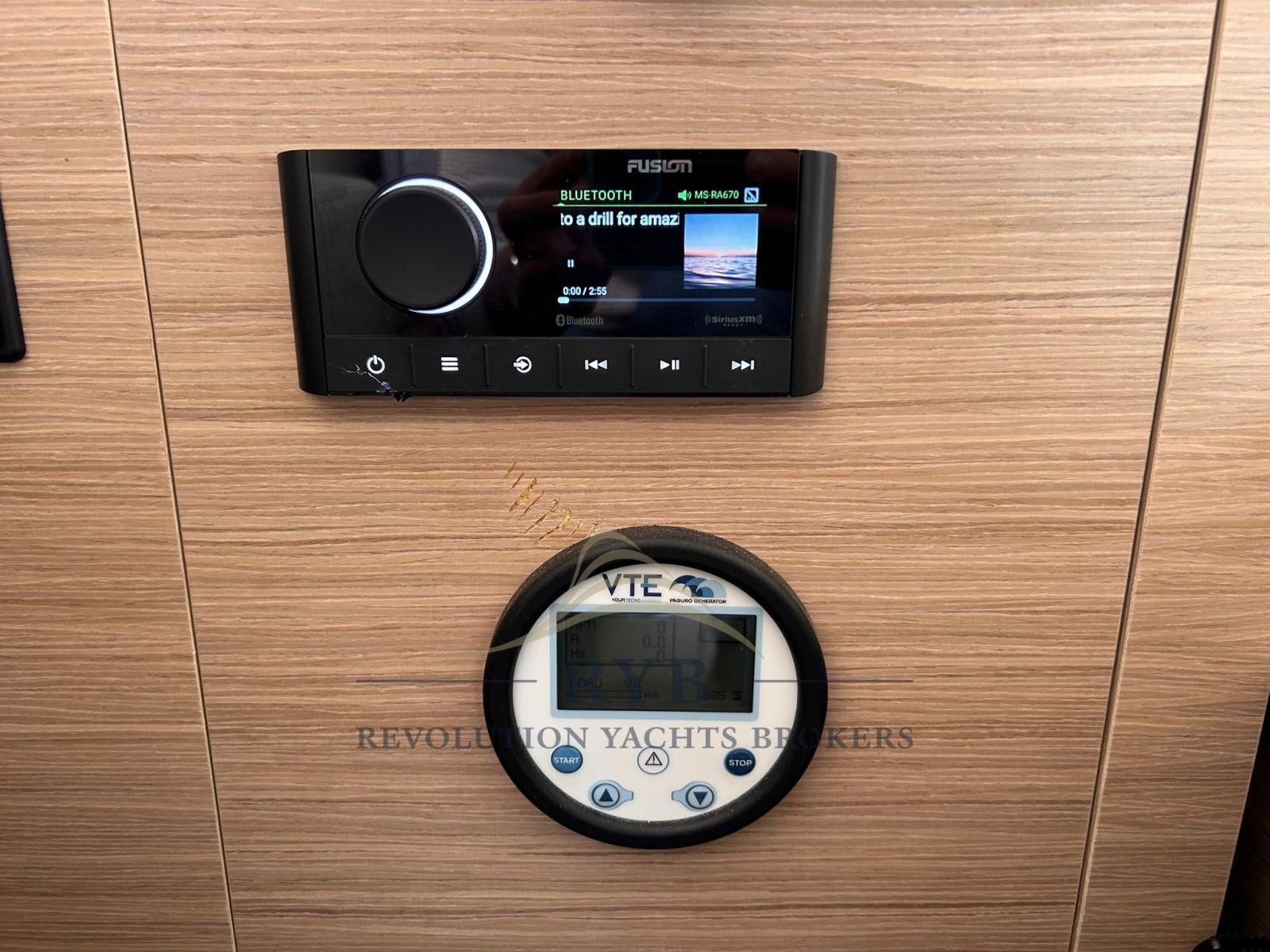 Anchor (+ CATENA 100metri 12 pollici), Water pressure pump, Courtesy Lights, Underwater lights, Platform, Entry door, Shorepower connector, swimming ladder, Winch.