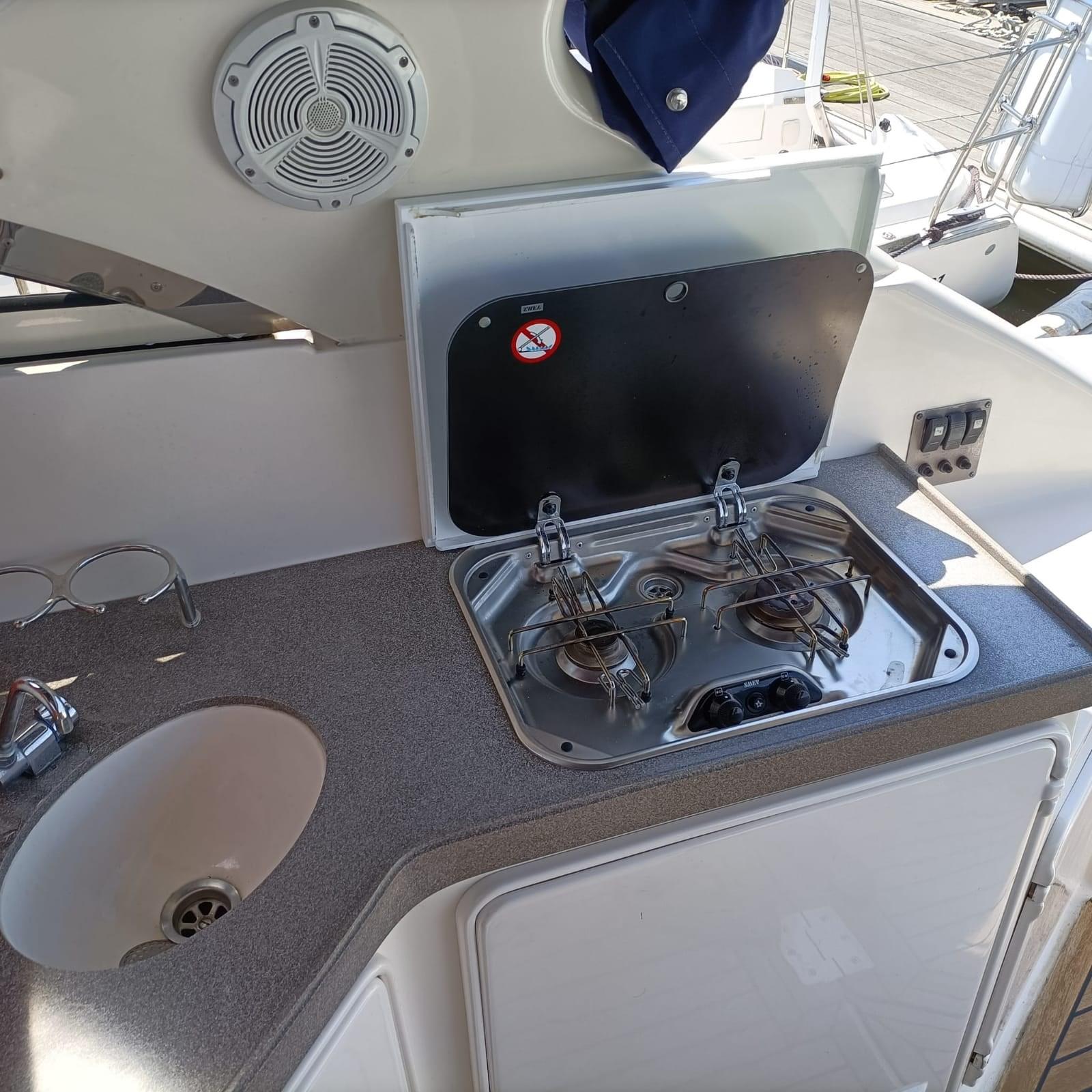 Engine Alarm, Water pressure pump, 5 Batteries, Deck Shower, Hydraulic Flaps, Fire Extinguishing System, Flaps Indicators, Courtesy Lights, Solar panels, Platform, Automatic Bilge Pump, Teak Cockpit, Shorepower connector, Voltage Rectifier, Rollbar, Electric Windlass, swimming ladder, Living Room Foldable Table, Horn.