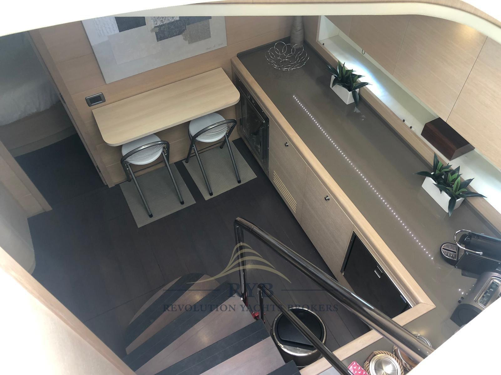 Auto Dynamic Trim Interceptor (HUMPREE), Water pressure pump, Teak Side Decks, Tender Crane (POPPA), Hard top (APRIBILE), Courtesy Lights, Gangway (TELESCOPICA A SCOMPARSA), Platform (TEAK), Entry door, Teak Cockpit, Shorepower connector, Electric Windlass, cockpit table.