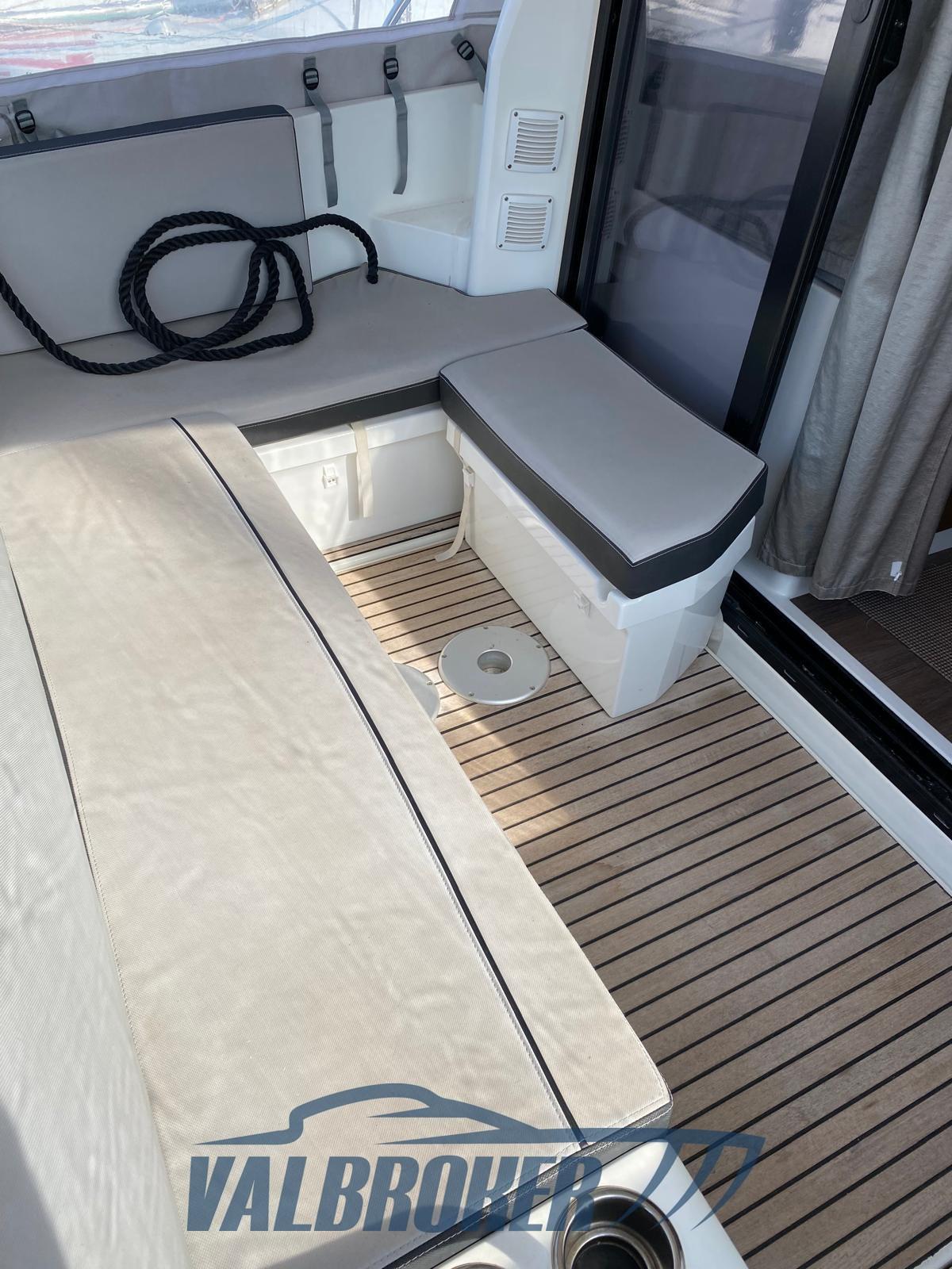 The Jeanneau Merry Fisher 895 is a versatile boat defined as a "true weekender", designed for cruising comfort and outdoor living. It has 2 separate double cabins and a bathroom with shower.