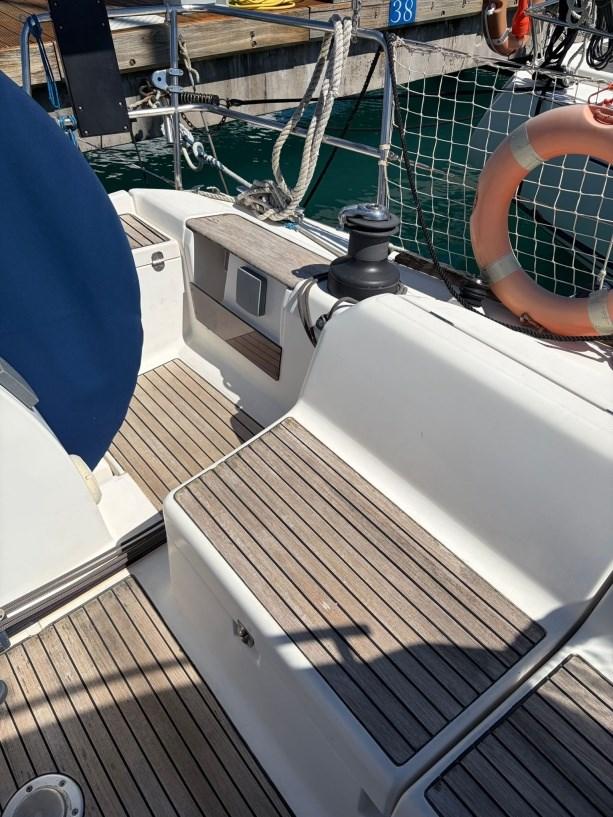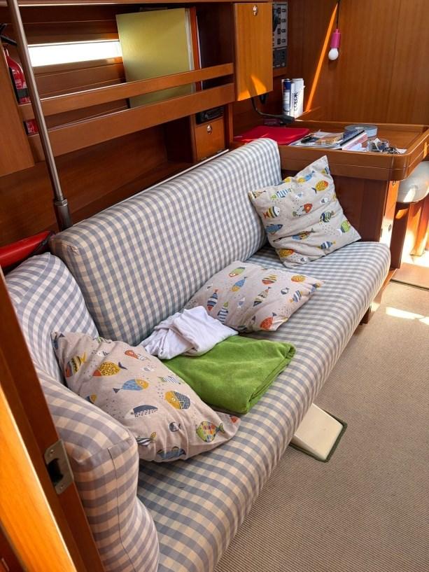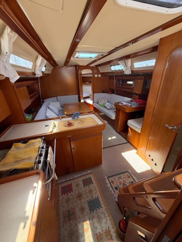 3rd owner since 2007; 2015 : replacement of small spring vang 1360 D 58; 2016 NEW: galvanized chain 50 mt; 2017 NEW: jib sheets and anchor line, sea intakes; 2024 NEW: engine battery, safety net, stainless steel cooling riser, mainsheet; January 2026 new mainsail on diamond ball bogies; jib 2024; staysail; gabled sun awning; awning connecting bimini and hood; wireless windlass remote control + cockpit button + remote control with bow cable; internal coconut carpet; dinette upholstery cover; folding dinette table; salt water pump; 5% brokerage commission + 22% VAT to be paid by the buyer (VAT is calculated only on the amount of the commission)