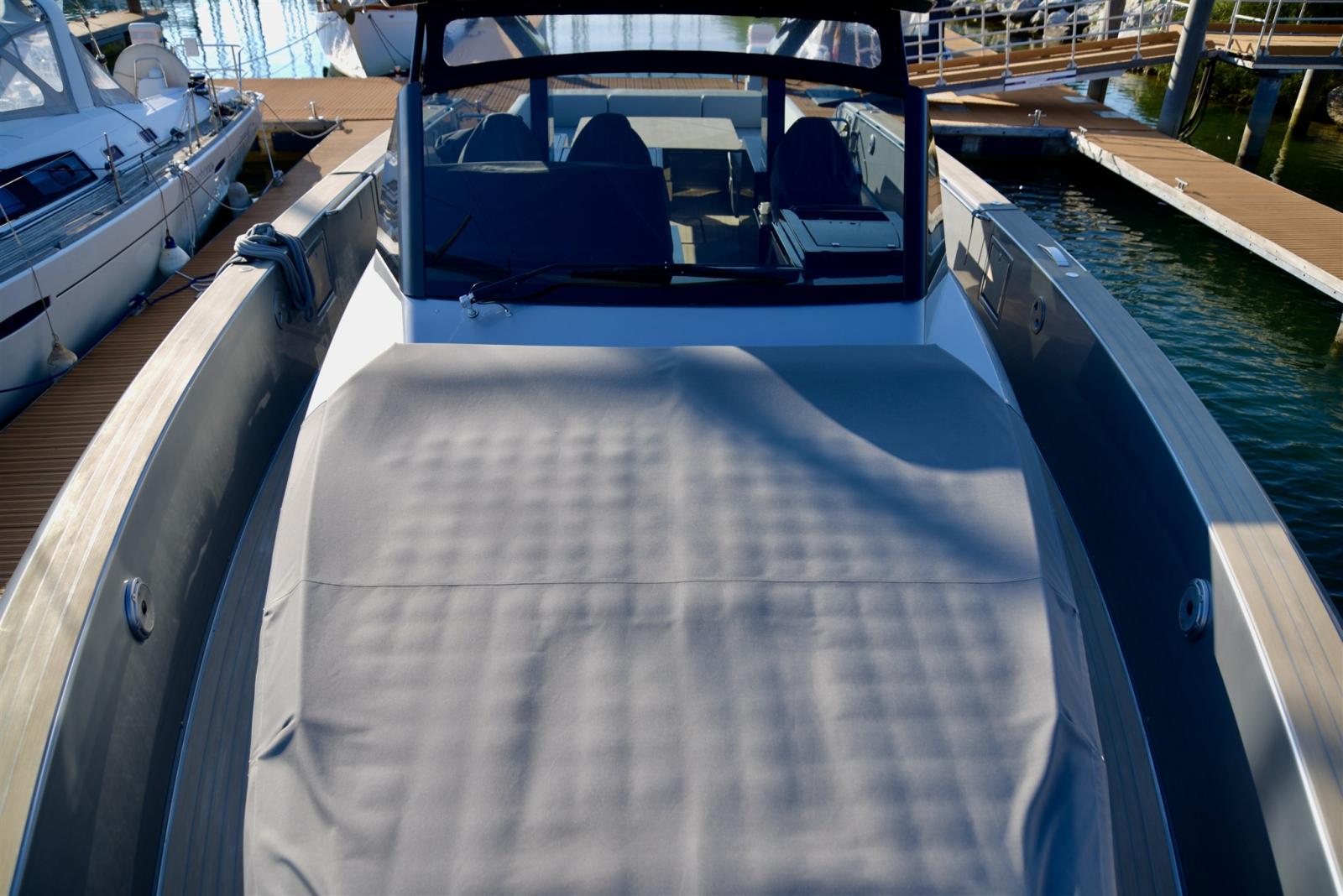 Engine Alarm, Bilge Alarm, Anchor (TREFOIL 15 KG), Auto Dynamic Trim Interceptor (VOLVO), Water pressure pump, Teak Side Decks (FLEXITEAK), Special Colour (SILVER METAL), Deck Shower, Fire Extinguishing System, Washbasin in the cockpit, 8 Fenders, Gangway (IDRAULICA), Platform (SISTEMA SALISCENDI), Teak deck (FLEXITEAK), Shorepower connector, Electric Windlass (CON VIDEOCAMERA), swimming ladder, cockpit table (ABBATTIBILE ELETTRICAMENTE), T-Top.