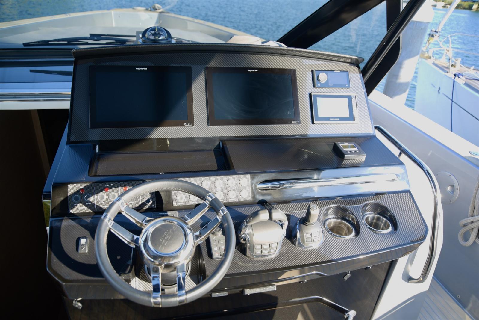 VOLVO DYNAMIC POSITION SYSTEM, ELECTRICALLY OPENING AFT SUNDECK WITH TENDER GARAGE, T-TOP AND COCKPIT LED LIGHTS, EXTRA BATTERY PACK