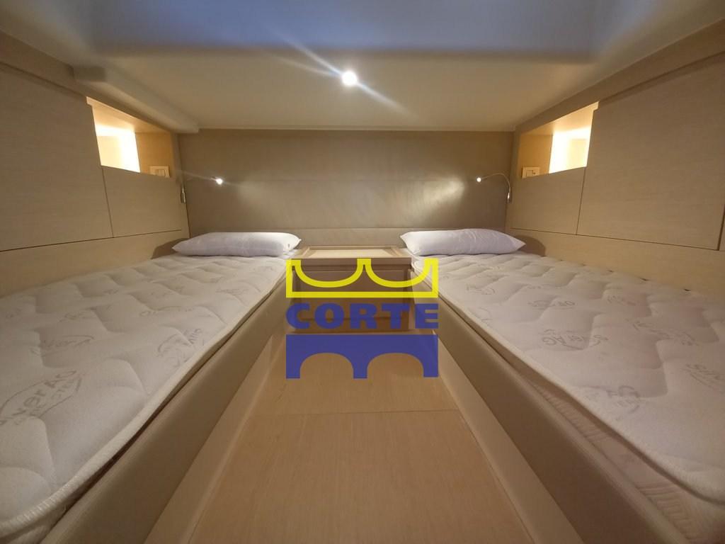 Master double cabin. Guest cabin with flat beds and separation door. Bathroom with shower.