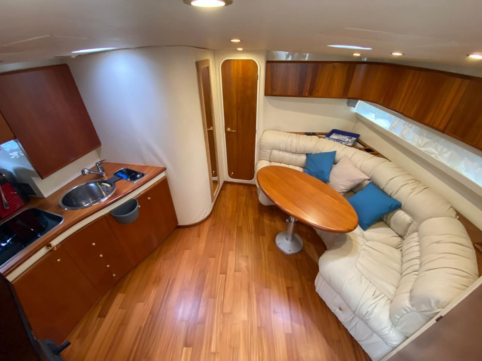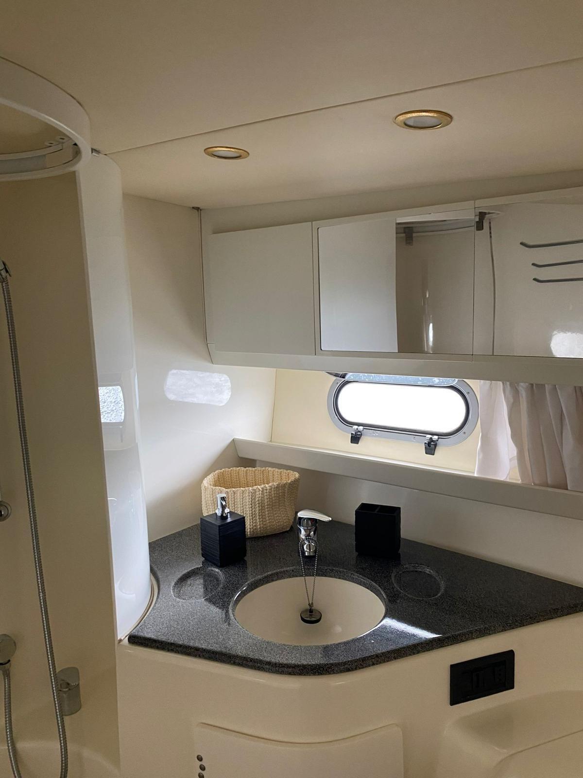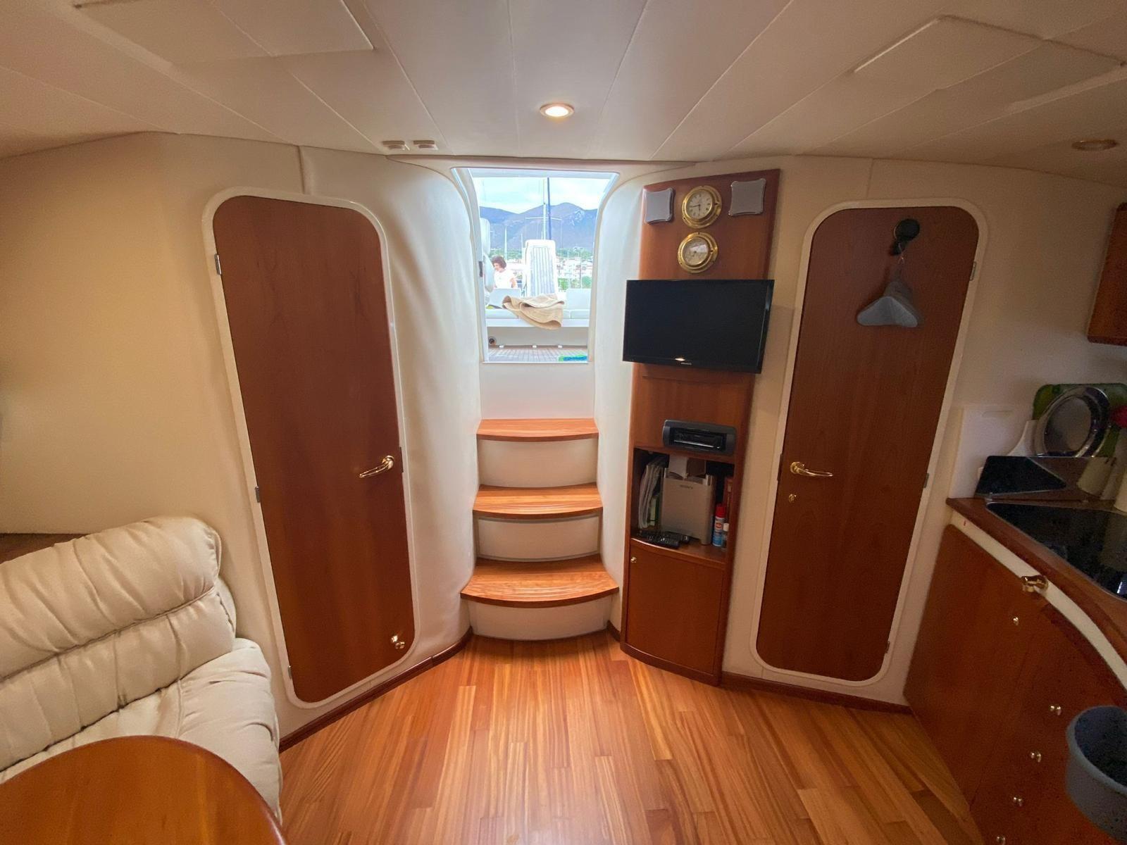 Swimming ladder, Cockpit table (electric), Compass, Odometer, Depth sounder, GPS, Plotter (Garmin), 2 x Air conditioning, Boiler, 2 x Electric marine toilet, Stereo (Bose system), VHF radio.