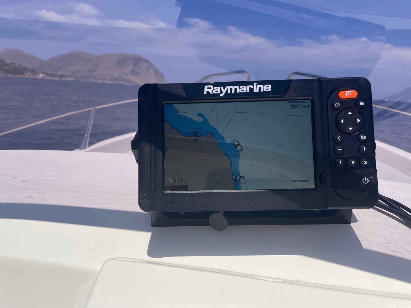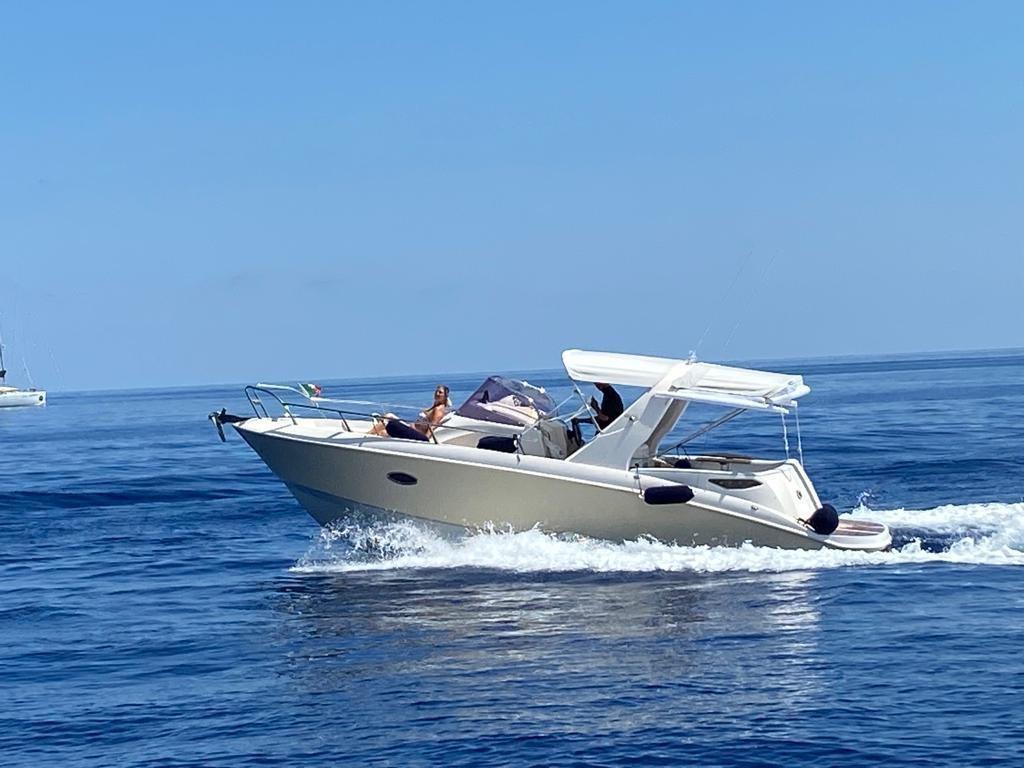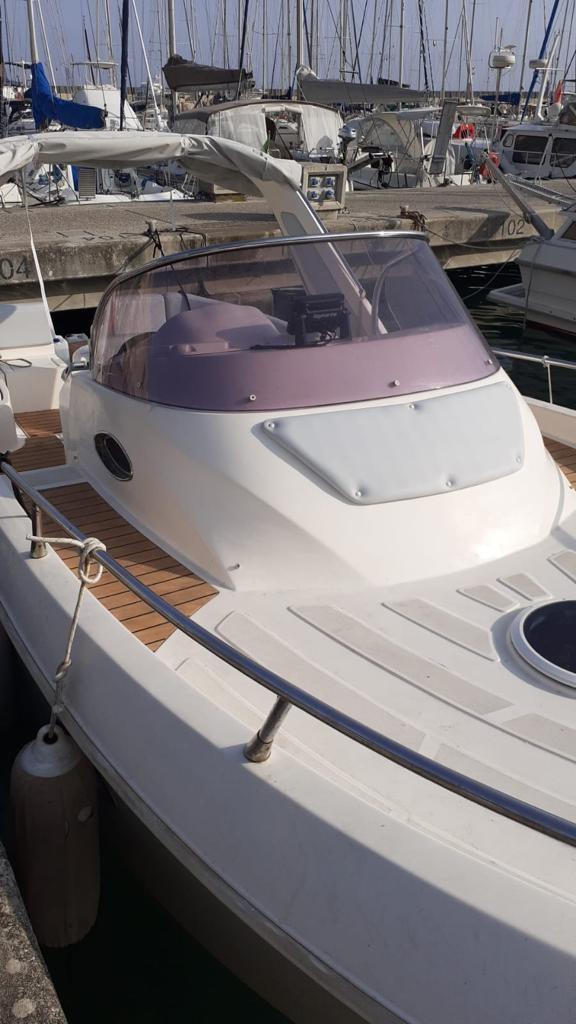 It mounts two 170 hp FNM Diesel engines, 190 engine hours, always maintained by the parent company, last extraordinary service 05/25, Mercury bravo 1 feet, last extraordinary maintenance 05/2025, FNM electronic throttles, steel fuel tanks lt. 150 x 2, total consumption 40 liters per hour, lt. 80 new 2023, Lenco electric flaps, Quick Silver electric windlass, 3 new 2025 batteries (1 right engine, 1 left engine, 1 Services), bilge pump, new 2023 autoclave, new 2023 hot water boiler, shore power socket, imp. electric 220/12 v. new 2023, Raymarine 2023 cartographic GPS (updated maps 2025), Raymarine new 2023 VHF, new 2023 instrument panel, forward cabin and aft berth, bathroom/shower in separate room, outdoor shower, electric toilet, outdoor kitchen (sink and no. 1 gas stove), new 2023 refrigerator, new 2023 awning on roll bar with the possibility of closing the cockpit side, complete cushions redone 2023, new 2023 teak.