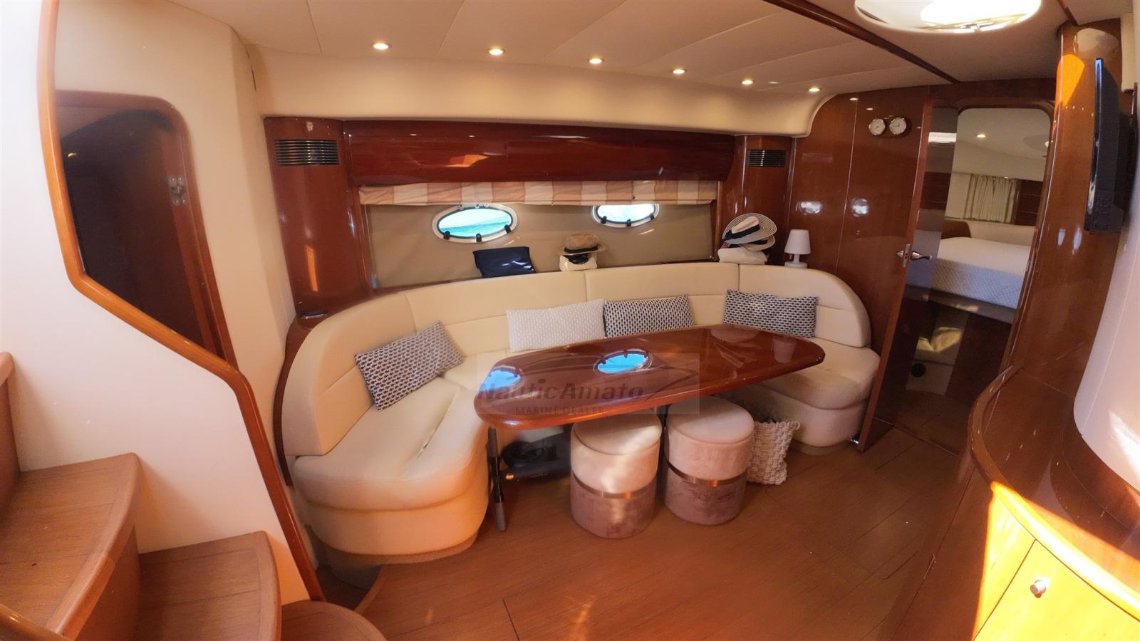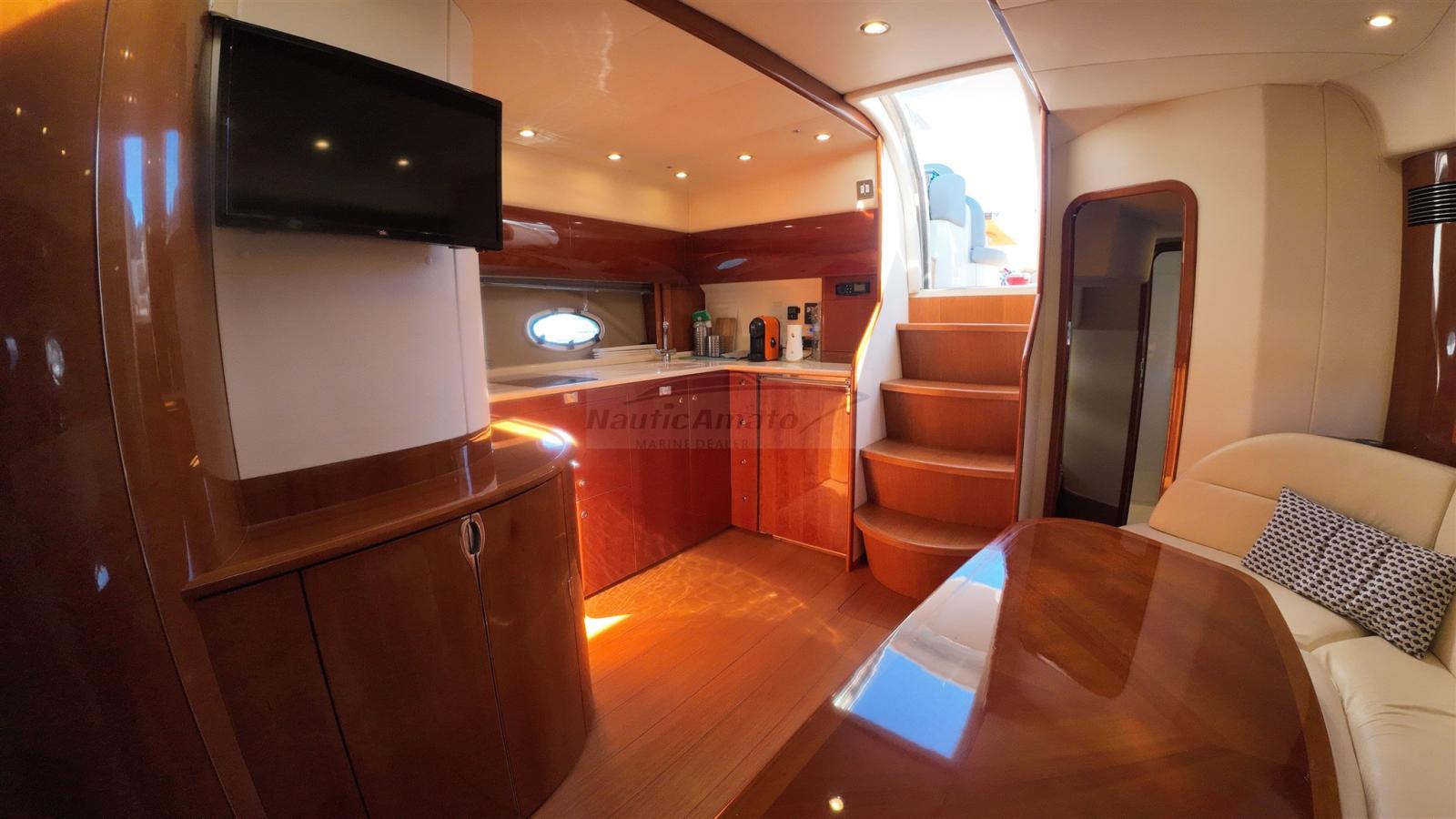 Engine Alarm, Bilge Alarm, Water pressure pump, Shore power cable, Deck Shower, Hydraulic Flaps, Tender Garage, Hard top, Washbasin in the cockpit, Courtesy Lights, Gangway, Automatic Bilge Pump, Teak Cockpit, Shorepower connector, Electric Windlass, swimming ladder, cockpit table, Living Room Foldable Table, Tender, Horn.