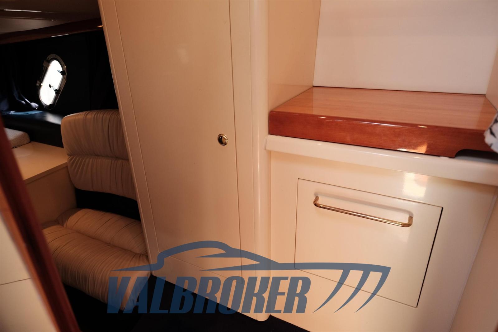 Anchor (50 m catena), Water pressure pump, 3 Batteries, Special Colour (Blu), Deck Shower, Directional Spotlight, Hydraulic Flaps, Tender Garage, Washbasin in the cockpit, Courtesy Lights, Underwater lights, Gangway (A scomparsa), Platform (Teak sintetico), Teak Cockpit, Rollbar, Electric Windlass (Comando anche a prua), cockpit table, Living Room Foldable Table.