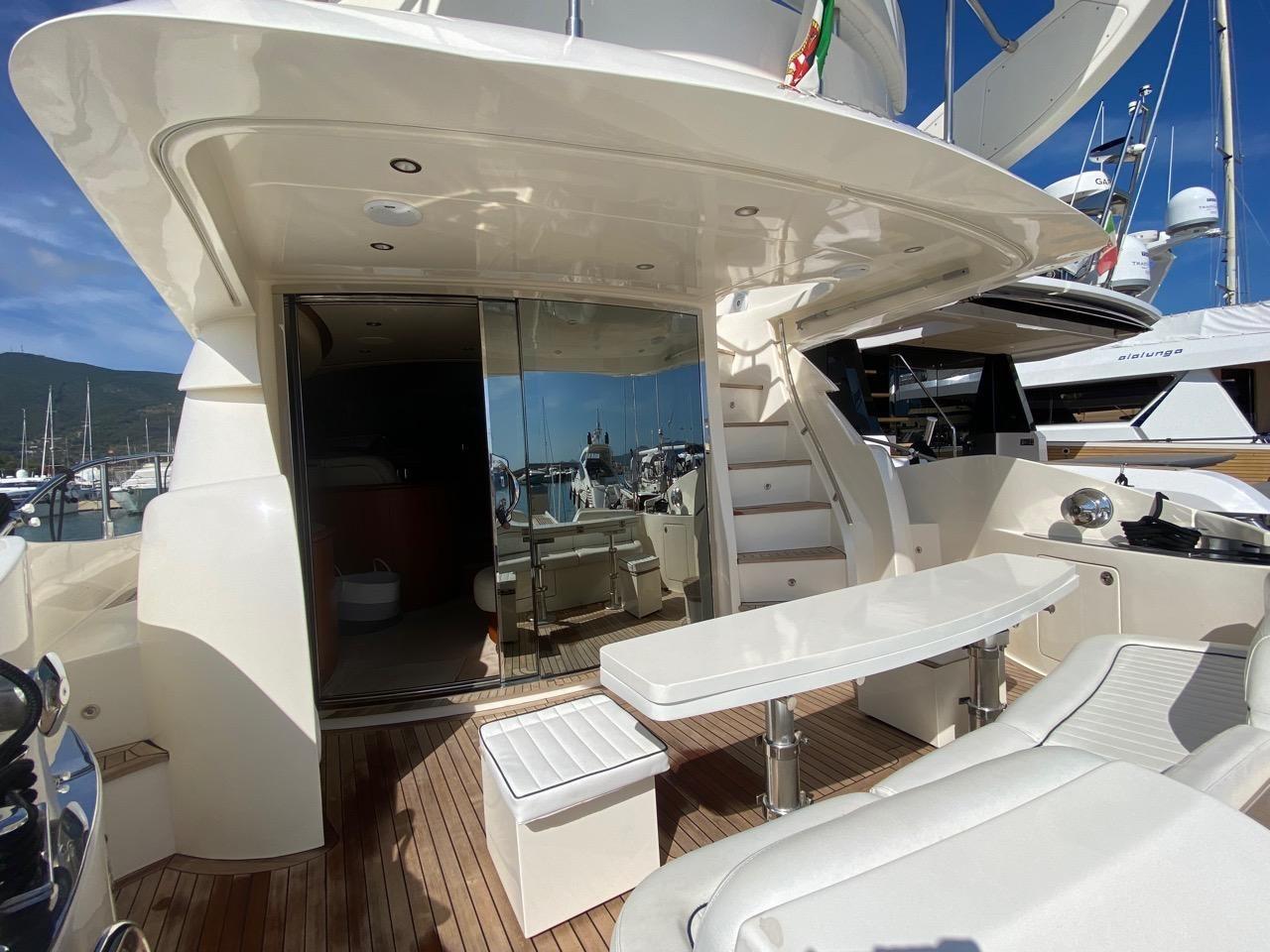 Engine Alarm, Water pressure pump, Deck Shower, 2 Hydraulic Flaps, Fire Extinguishing System, Flaps Indicators, Courtesy Lights, Gangway, Automatic Bilge Pump, Manual Bilge Pump, Entry door, Teak Cockpit, Shorepower connector, Rollbar, Electric Windlass, Saddles for tender, cockpit table, Tender, 2 Stern Winches.