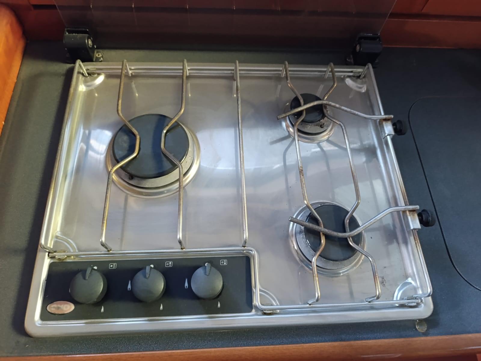 Galley, Burner (3 fuochi gas), Refrigerator (80 LT).