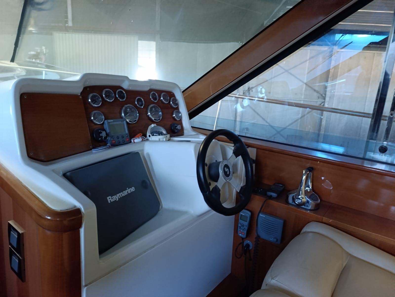 Engine Alarm, Water pressure pump, Batteries (nuove), Guard rail (teak), Deck Shower (CALDA E FREDDA), Twin Steering, 2 Hydraulic Flaps, Flaps Indicators, Gangway, Platform (TEAK), Automatic Bilge Pump, Entry door, Teak Cockpit, Voltage Rectifier, Electric Windlass, swimming ladder, Horn.