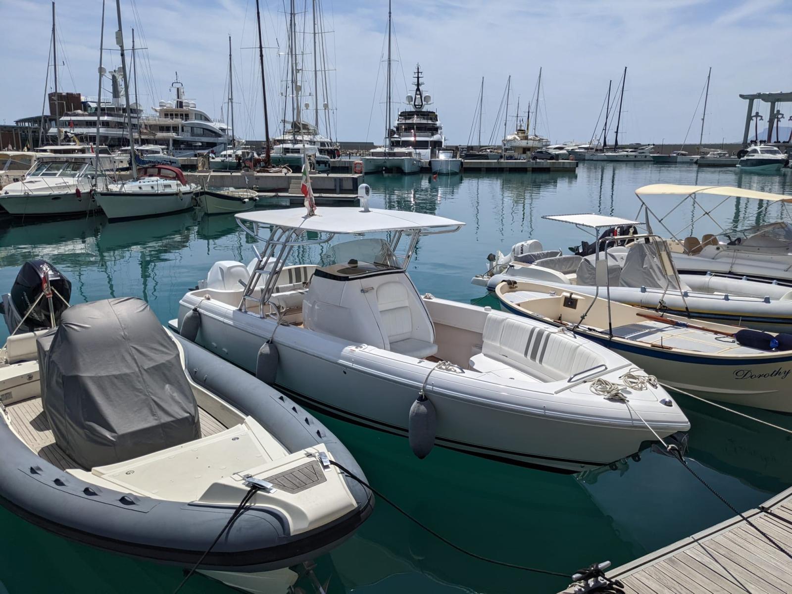 Alternator, Deck Shower, Trim Tabs / Trimflaps, Hard top, Fenders, Teak deck, Side door, Aft Cockpit, Teak Cockpit, Electric Windlass, swimming ladder, T-Top.