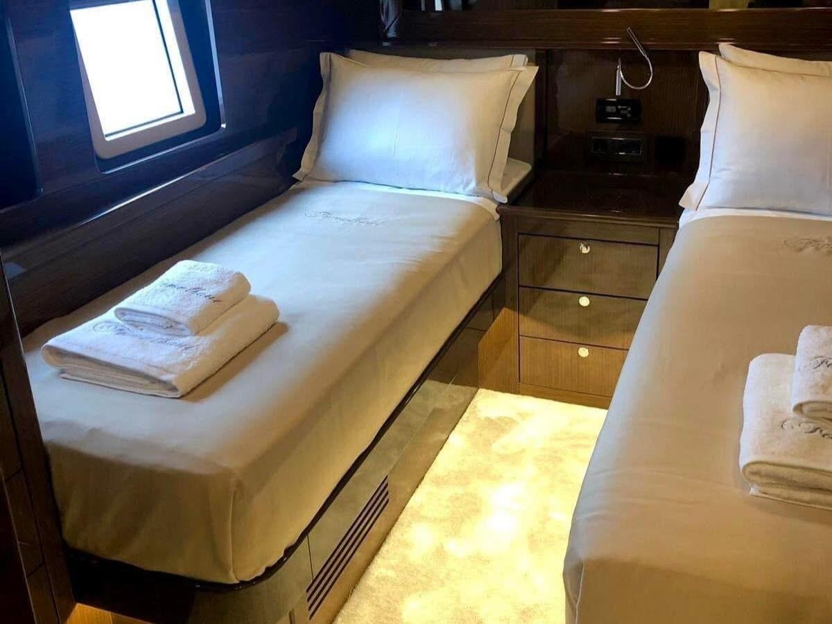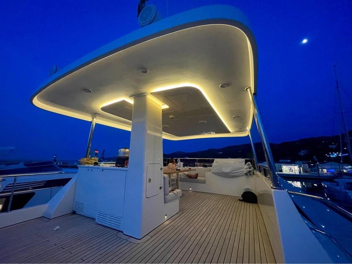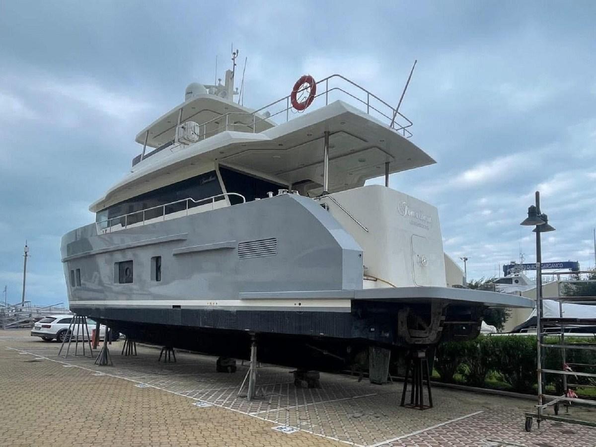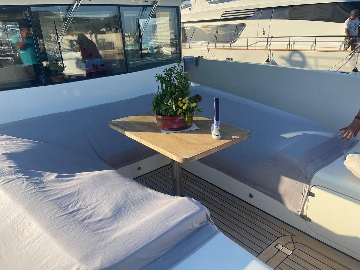 Engine Alarm, Bilge Alarm, Anchor (45 kg + CATENA 130 m), Water pressure pump, Batteries (2025), Teak Side Decks, Battery charger (MASTERVOLT), Deck Shower, Twin Steering, Stern Thruster (SIDEPOWER SEP210), Bow Thruster (SIDEPOWER SEP210), Fire Extinguishing System (FM-200 (SALA MACCHINE) + 5x CO2 FISSI), Washbasin in the cockpit, Courtesy Lights, 4 Underwater lights (AQUALUMA FF24), Battery Monitor (MASTERVOLT TOUCHSCREEN PMS), Solar panels (MASTERVOLT SCM60 MPPT 600 W), Gangway (IDRAULICA BESENZONI), Platform (IDRAULICA BESENZONI), Teak deck, Entry door, Side door, Teak Cockpit, Shorepower connector, Water harbor connector system, Electric Windlass, swimming ladder, cockpit table, Stern Winches, Bow Winches.