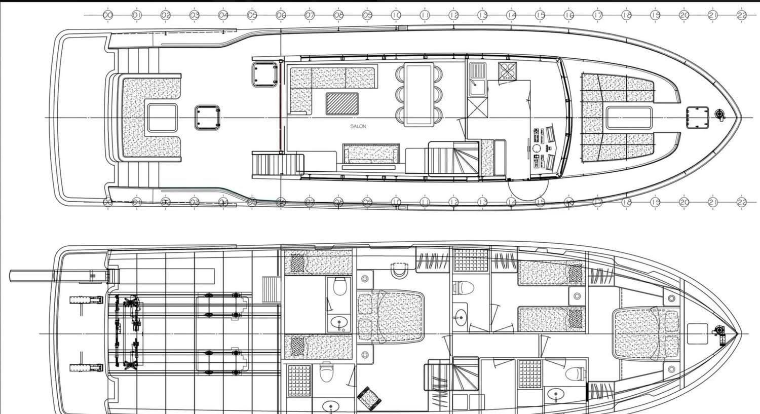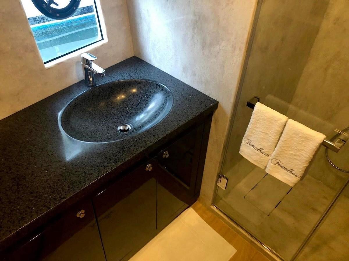 Warm Water, Hot Air, Air Conditioning (MARINCO 60.000 BTU), Warm Water System, Internet Connection (LTE CELLULAR DATA MODEM), Light Dimmer, Watermaker (AQUABASE YC3-230 / 180 l/h), Waste Water Plant, Fuel Tank Indicator, Water Tank Meter, Engine oil pressure gauge, Engine temperature gauge, Inverter (MASTERVOLT 5 kW), Interior wooden floor, 12V Outlets, 220V Outlets, Black Water Tank, Video camera (CCTV DAHUA CAMERA SYSTEM), 4 Electric Toilet.