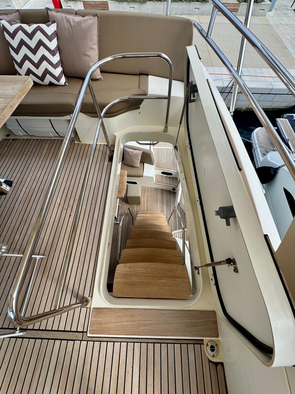 Bilge Alarm, Teak Side Decks, Deck Shower, Bow Thruster (Max Power), Fenders, Gangway, Automatic Bilge Pump, Manual Bilge Pump, Teak Cockpit, Electric Windlass, swimming ladder, cockpit table.