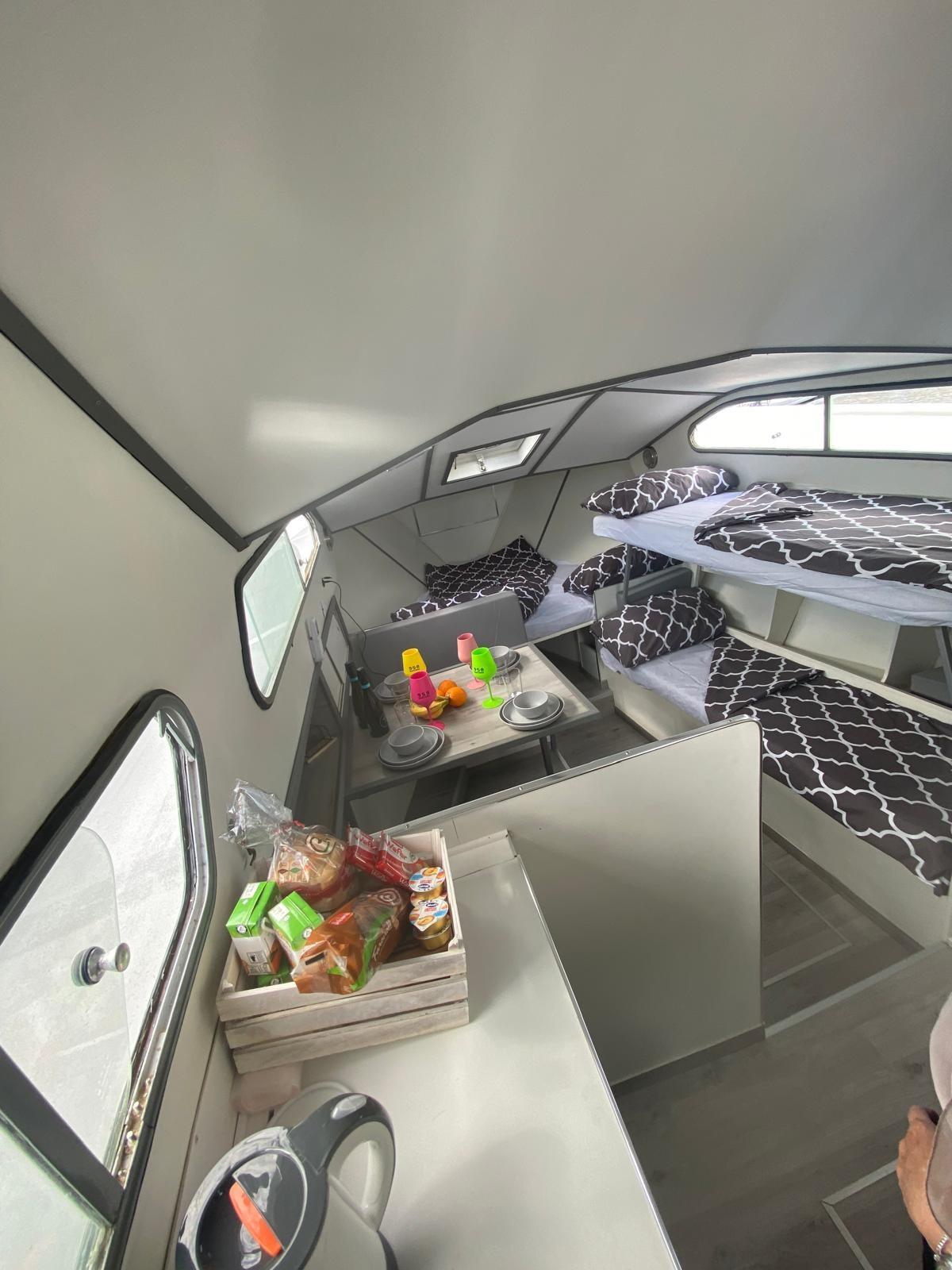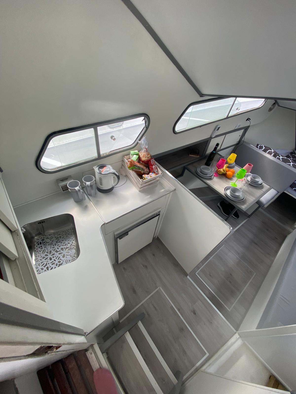 Warm Water, Warm Water System, Fuel Tank Indicator, Interior wooden floor, 12V Outlets, 220V Outlets, Electric Toilet.