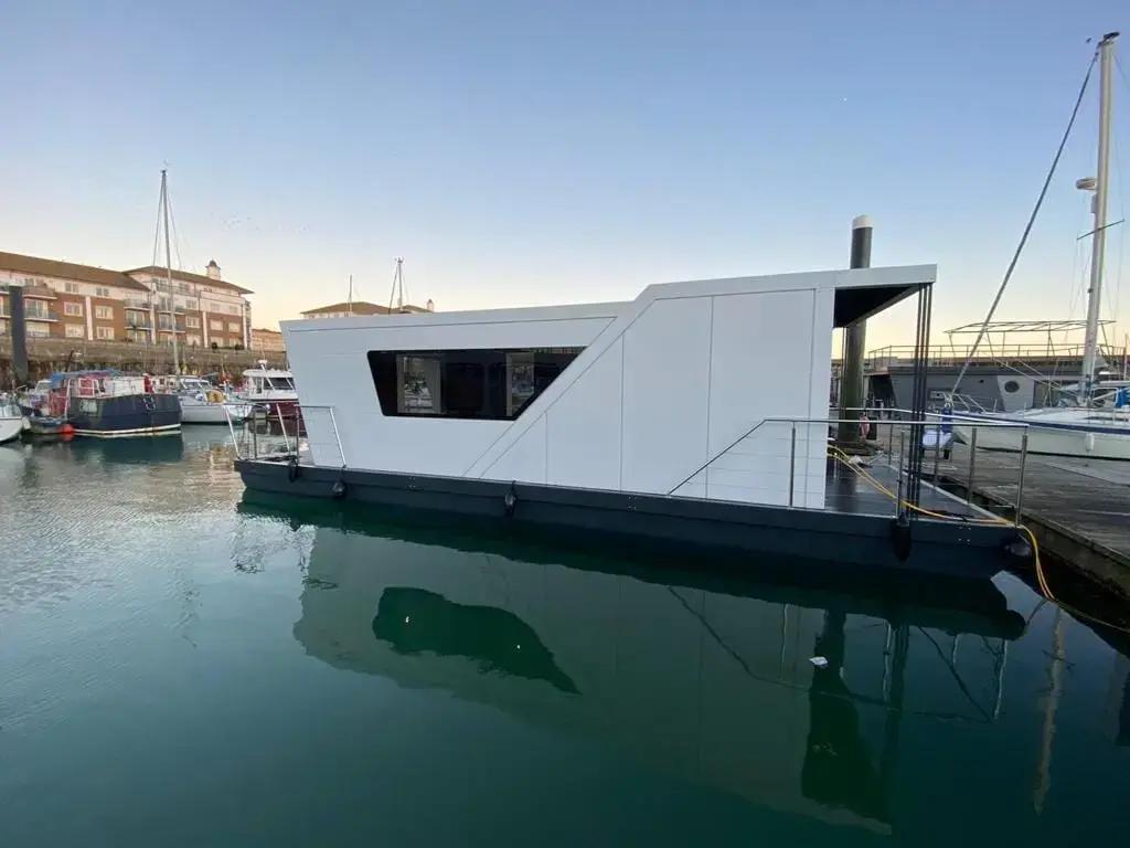 PLEASE NOTE: This is a static floating home and has no powered engine of its own. Delivery is ex Chertsey but onward delivery and install can be quoted and arranged. Mains electricity and sewage connection is required.