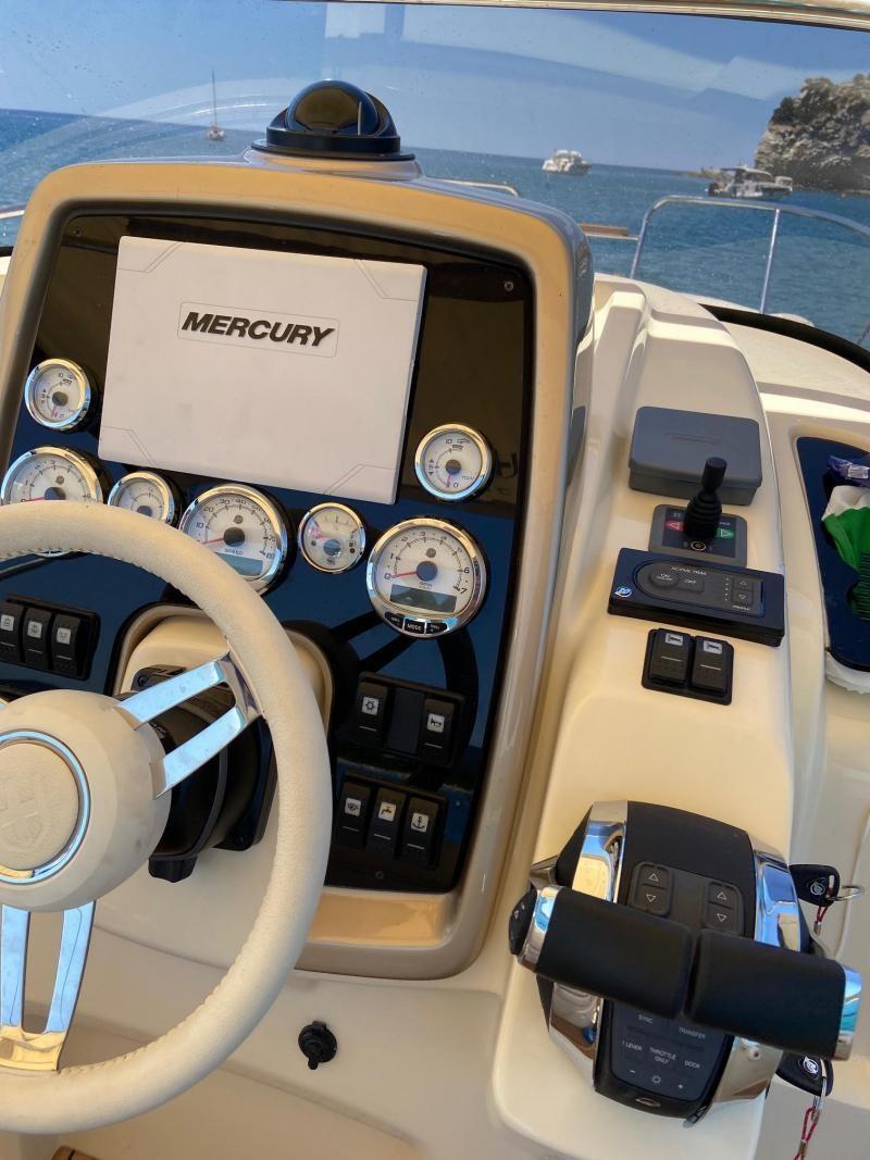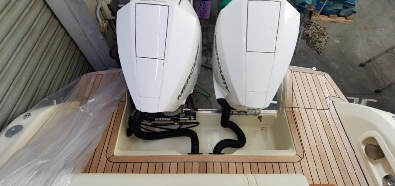 The INVICTUS CX270 shares with her predecessor, the CX280, her elegant, versatile and convivial character. The outboard configuration enhances the performance, without any compromise in terms of line balance and smoothness. The INVICTUS CX270 is a very fast craft (maximum speed 38 knots), excellently equipped with: bow thruster, teak cockpit and swim platform, oversized water tank (70 liters instead of 54) with level indicator, Mercury Vessel View display and removable cockpit table. The boat is equipped with a state-of-the-art “Interceptor” trim tab system which, instead of using traditional flaps/trim tabs, employs electrically activated “blades” which project downwards, parallel to the transom, for an effective diversion of hydrodynamic flow under the hull with reaction times of less than 1.5 seconds. With just 54 engine hours, it is in like-new condition, as it has been used very little by her only one owner, who bought her new in 2020 - Check the full brochure, the video and the sea trial on our Web site MEDIA SHIP