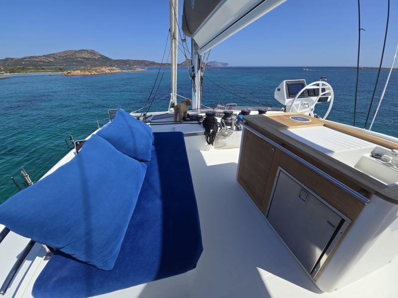 The IPANEMA 58 in the Maestro version offers, in addition to the four guest cabins, a magnificent owner's suite that redefines the concept of contemporary luxury with its large spaces, excellent lighting, and high-quality furnishings. The IPANEMA 58 is well-equipped, featuring a generator, watermaker, air conditioner, solar panels, Park Avenue boom, six electric winches and electric mooring winches, flybridge helm station, internal/external GPS, autopilot, two large retractable tables on the Flybridge, fully equipped kitchen (two internal fridges, one with ice maker and another outdoor fridge, oven, microwave, freezer, washer-dryer, dishwasher), TV in the saloon and the owner's cabin, Hi-Fi system with external speakers, LED interior lighting, Fusion system on the flybridge. - Check the full brochure, the video and the sea trial on our Web site MEDIA SHIP