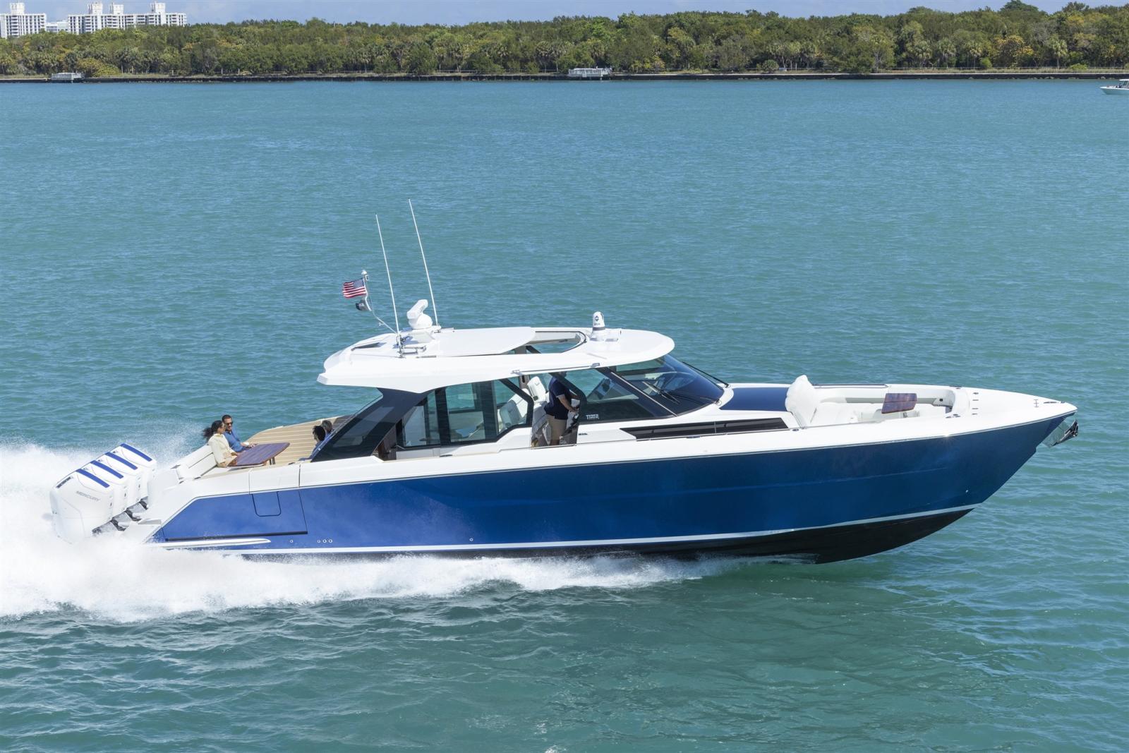 The legacy of the Luxury Sport series expands with the 56 LS, the largest and most ambitious outboard engine boat in Tiara Yachts' history. Outdoor enjoyment is maximized by multiple social zones, a well-appointed galley, and two twin terraces that expand the cockpit and provide unobstructed access to the water. Several aft cockpit module options, focused on entertainment and fishing, allow boats to be customized to each owner's preferences. With the ability to walk all the way around and the pilot house doors to port and starboard of the helm, you can enjoy unobstructed access to the spacious bow with lounge area. Below deck, two spacious cabins and two en-suite bathrooms offer luxurious accommodation for four people. With the unwavering strength of a Mercury® V12 engine, the 56 LS is powered by four 600 hp Verado® engines, providing a refined experience for the captain and guests thanks to soundproofing technology and revolutionary advancements in handling and control. The integrated electronics package includes instinctive Garmin® Marine navigation systems that provide the latest piloting technology. Contact us for more details.